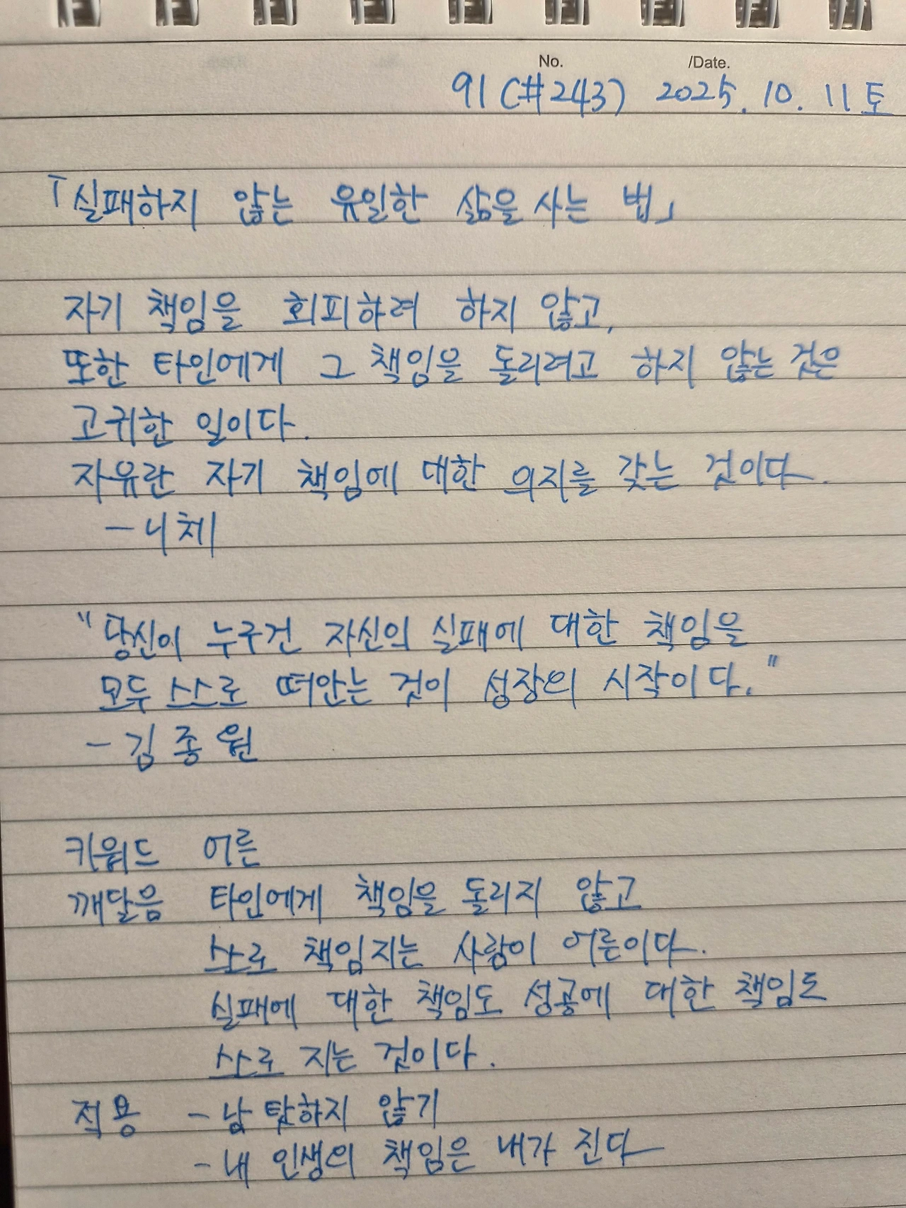 한 번 사는 인생, 어떻게 살아야 하는가 / 필사 91(#243)