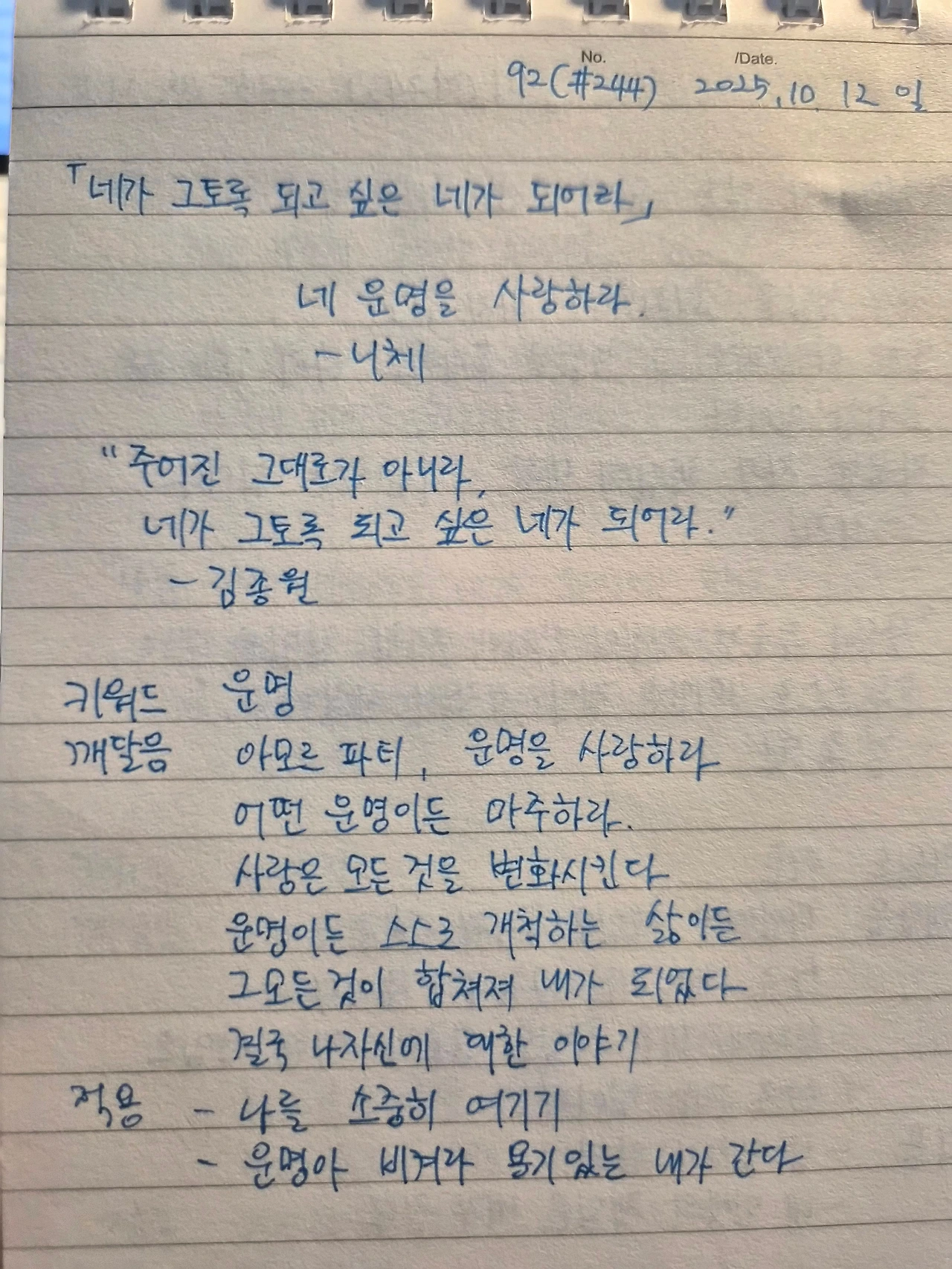 "운명을 사랑할 때, 비로소 나는 나 자신이 된다."