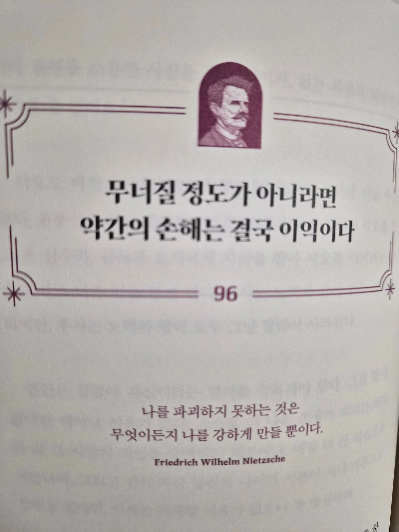 니체의 말은 삶의 고비마다 우리를 붙잡아줄 문장입니다. 누구나 손해 보는 것을 싫어합니다. 억울한 일을 당하거나, 애써 이룬 것을 잃을 때 마음이 흔들립니다. 손해는 아프지만 나를 단단하게 해주고, 잃어버림은 새로운 나를 만들어줍니다.