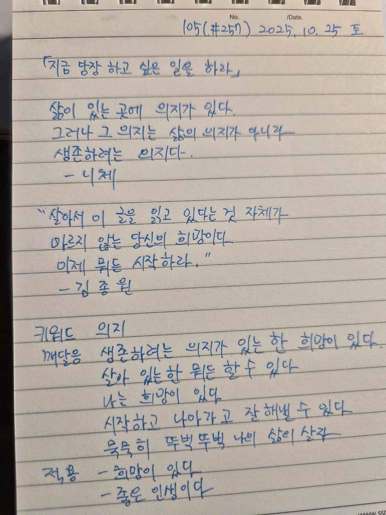 한 번 사는 인생, 어떻게 살아야 하는가 / 필사 105(#257)