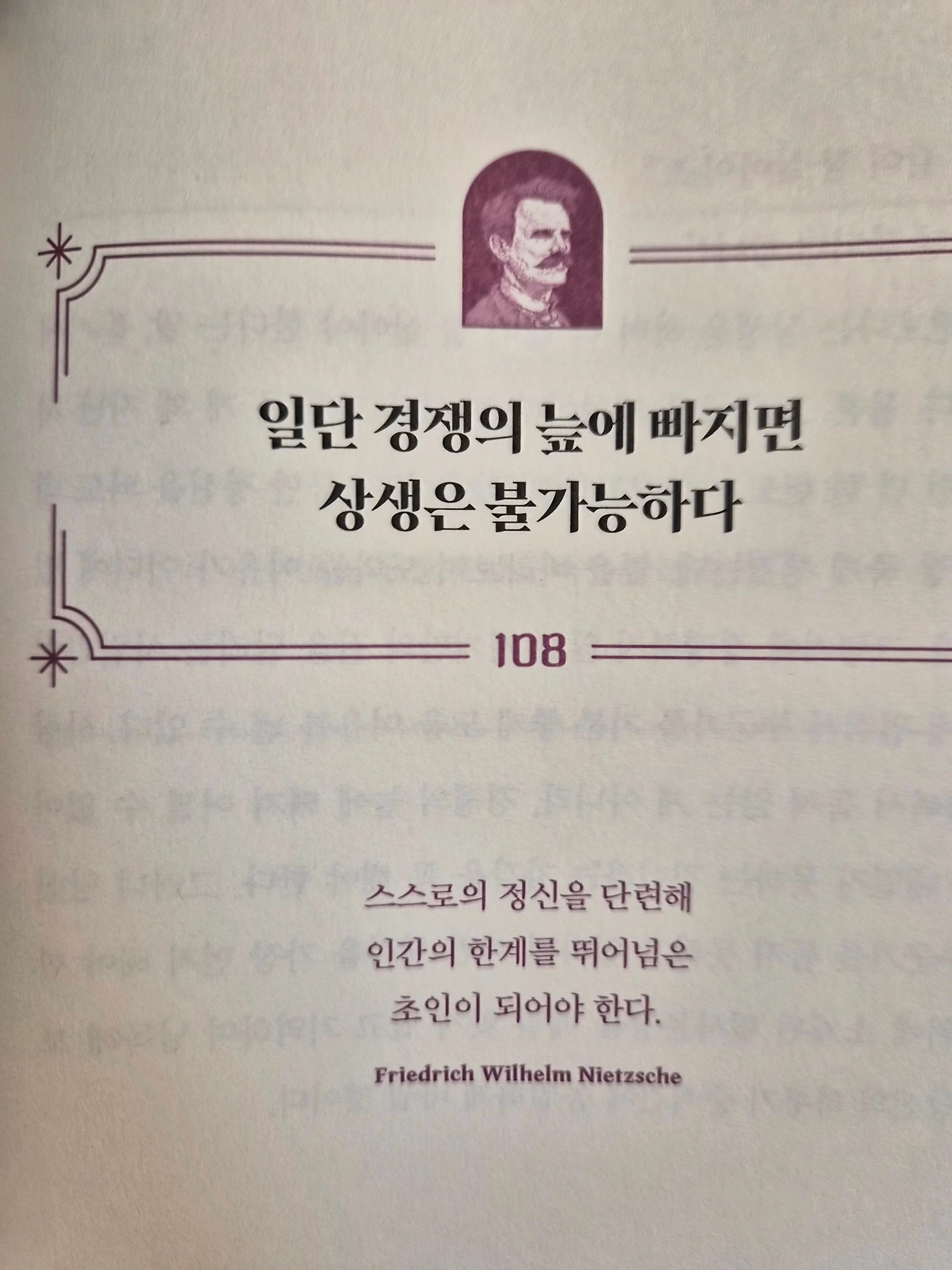 니체의 언어를 타고 108일 동안 여행을 한 기분입니다. 때로는 “너 자신의 머릿속부터 개선하라.”는 말에 날 선 채찍질을 맞았고, “나의 삶은 또 하나의 사상이다.”라는 문장에 자만심이 일었습니다. 새로운 선택 앞에 떨고 있을 때는 “운명아 비켜라, 용기 있는 내가 간다.”며 용기를 내기도 했습니다.