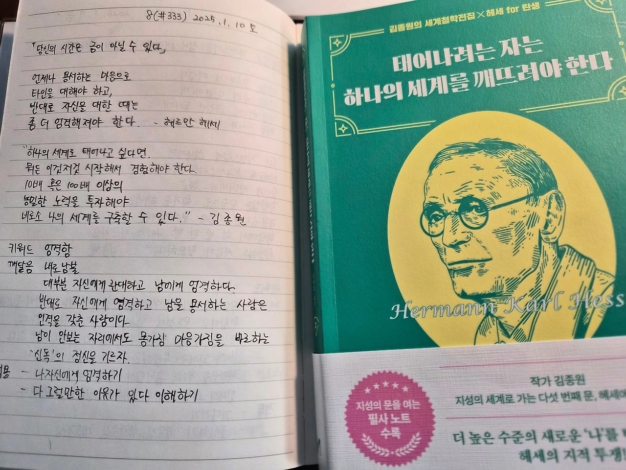 그럼에도 불구하고 매일 책상 앞에 앉아 펜을 듭니다. 헤세의 문장을 필사하며 흩어진 마음을 다시 모읍니다. 필사는 나를 돌아보는 가장 정직한 거울입니다. 그 거울 속에서 나의 부끄러움을 마주하고, 새해에는 스스로에게 조금 더 엄격해지리라 다짐해 봅니다.