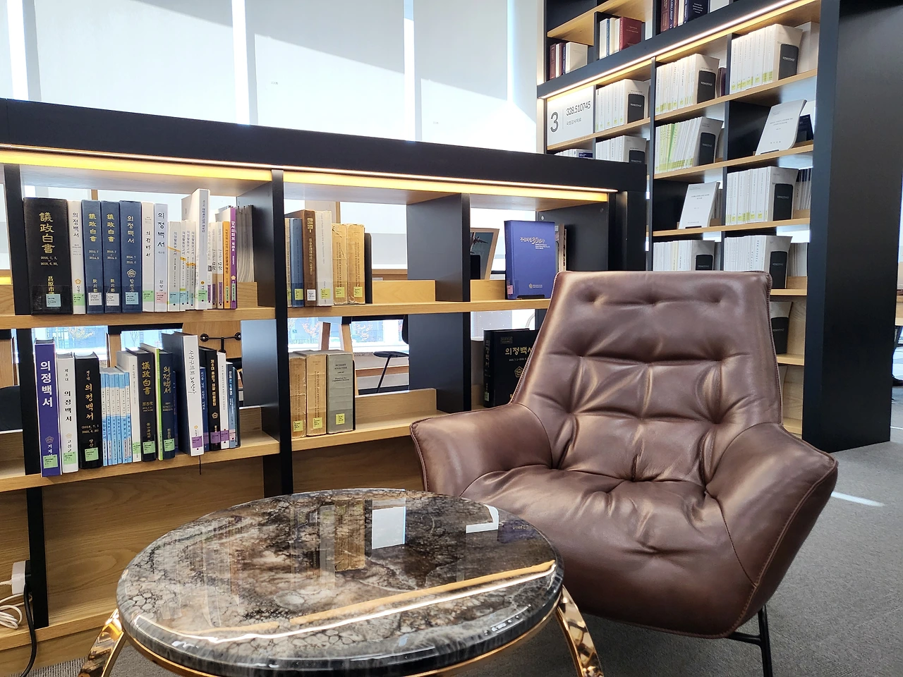 다시 2층으로 올라가 의회자료실을 둘러보던 중, 내 눈을 의심했다. 바로 그곳에, 25년 전 내가 그토록 그리워하던 안락의자가 놓여 있었던 것이다. 비록 조명은 환한 LED 불빛이었고 전용 스탠드는 없었지만, 가죽으로 만든 1인용 소파가 놓여있었다.