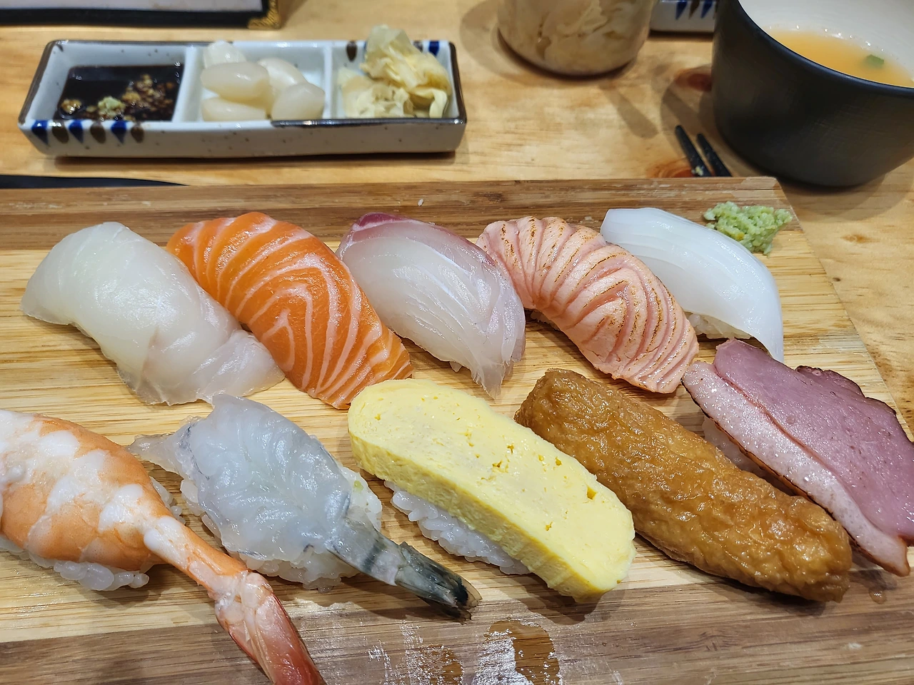 점심엔 초밥을 먹었어요. 점심특선에 우동까지 포함해서 12,000원이더라고요. 예전에 일본 여행에서 먹었던 초밥이 떠올랐어요. 서서 먹는 초밥집이라 가격이 쌀 거라 생각했지만 둘이 먹고 나니 20만 원 가까이 나왔던 기억이 있네요. 그럼에도 그 맛은 정말 잊을 수 없었어요.