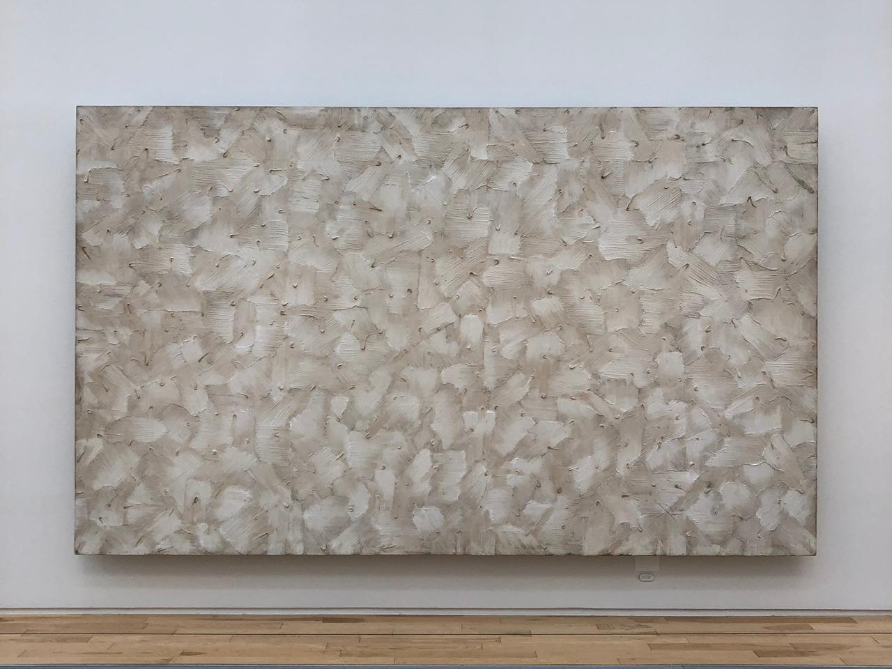 미술에 대해서 조예가 깊지 않은 나는 당황스러웠지만, 한편으로는 신기했다. '추상미술'하면 떠오르는 온갖 색의 물감이 덕지덕지 겹쳐진 그림, 피카소의 그림처럼 형태의 왜곡이 주가 되는 그림과는 전혀 다른 느낌이었기 때문이다. 큰 캔버스에 색 하나. 조금 더 자세히 들여다 보니 일정한 무늬의 연필자국이 물감을 긁으며 흔적을 남겼다. 이런 비슷해 보이는 그림만 몇십개가 늘어선 전시장의 모습과 그걸 처음 본 나의 모습...0.0