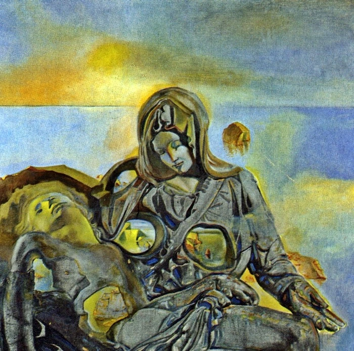 말년으로 가면 달리는 미켈란젤로, 벨라스케즈 같은 거장에 대한 깊은 경의를 표하며 고전주의 거장들의 작품을 그의 관점으로 재해석한다. 그중에서도 미켈란젤로의 피에타를 재해석한 '지질학적 메아리'는 굉장히 신선한 충격이었다. 마리아와 예수를 바닷가의 암석처럼 표현하고, 마리아의 가슴속에 고향 바닷가 풍경과 예수의 얼굴을 담아낸 이 그림이 자신의 부인 '갈라'의 건강 상태 악화로 그녀의 끝을 예견한 달리의 슬픔이 담긴 작품이라는 해설이 있었는데, 나에게는 괴짜로 불리던 자신을 지지하고 감싸주던 어머니에 대한 그리움과 그로부터 느꼈던 편안함을 담아낸 것처럼 느껴졌다. 그 대상이 누구였든지 달리에게 갈라, 혹은 어머니는 바닷가의 변하지 않는 암석 같은 존재가 아니었을까. 달리의 피에타는 그가 꿈속에서 만난 갈라, 혹은 어머니의 모습을 엿보는 기분이었다.