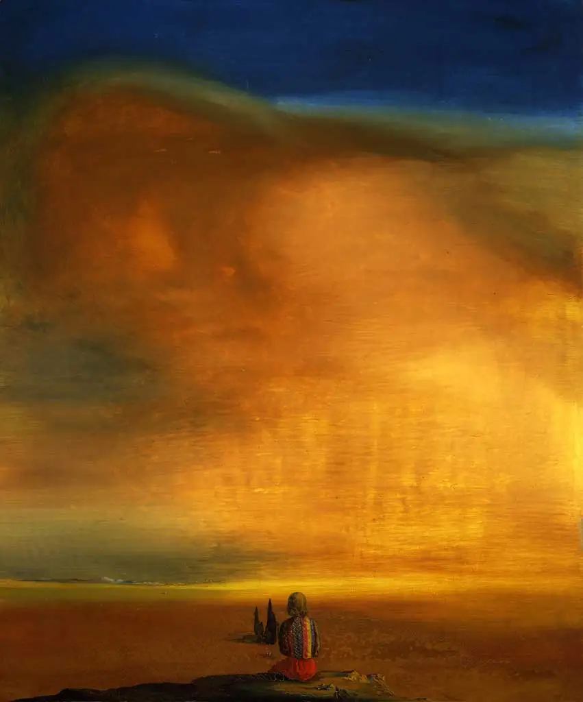 '슈거 스핑크스', 이번 전시에서 가장 기억에 남은 작품이다. 비교적 앞쪽 섹션에서 만날 수 있었던 이 작품은 그 분위기가 보는 사람을 압도했고, 제목처럼 스핑크스를 연상시키는 주황빛 거대한 구름과 작품 중앙에 앉아 있는 작은 여인이 대비되어 고독함, 외로움, 두려움 등의 복합적인 감정을 떠올리게 했다. 실제로 이 그림은 달리가 밀레의 '만종'이라는 작품을 처음 보고 불안감에 휩싸여 다양한 해석을 주장하며 그렸던 여러 작품들 중 하나로, 그림 하단을 자세히 보면 사이프러스 나무 두 그루 사이로 만종에 등장하는 두 인물과 수레를 찾아볼 수 있다. 등을 돌리고 앉아 있는 여인은 달리의 평생의 뮤즈였던 부인 '갈라'인데, 달리가 불안함을 느꼈던 만종을 갈라와 함께 녹여낸 모습을 통해 달리는 갈라를 너무 사랑한 나머지 그녀를 완벽하게 알지 못한다는 것에 대한 불안감을 늘 느끼고 있었던 것은 아닐지, 혹은 때때로 느껴지는 불안감을 갈라에 대한 사랑으로 이겨내고자 한 것이 아닌지 생각해 보았다.