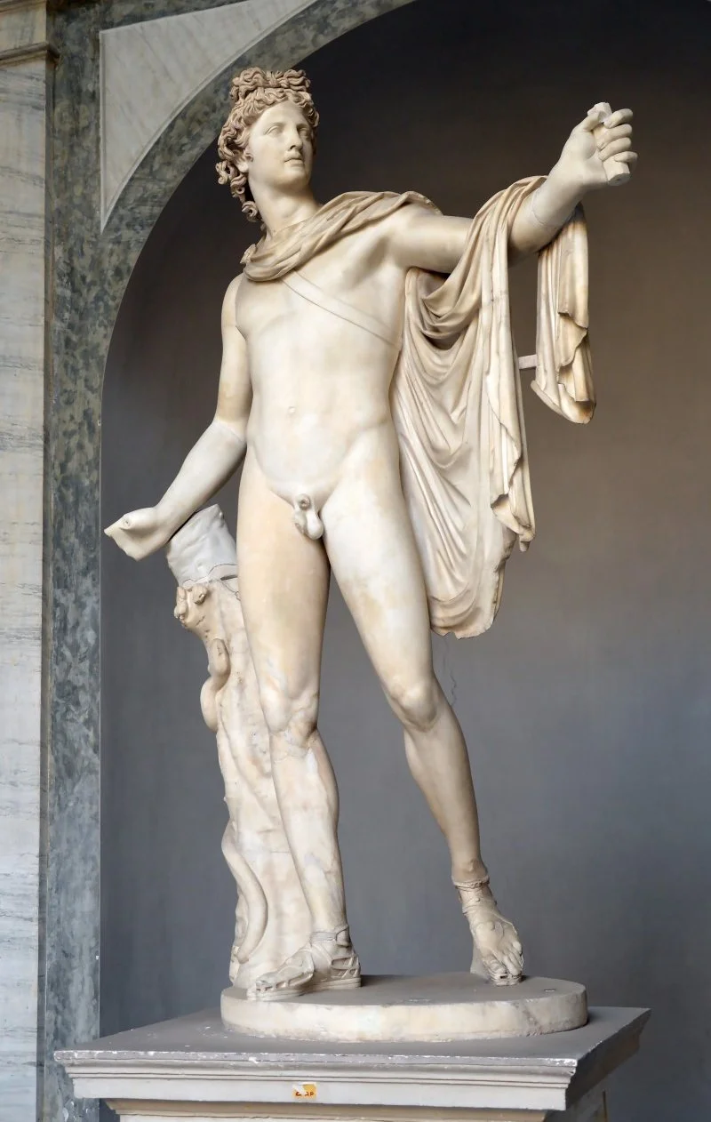 그는 태양의 신이자 예술의 신이었고 예언과 궁술의 신으로서, ‘빛나는, 찬란한’이라는 뜻의 ‘포에버스(Phoebus)’의 수식어가 붙은 ‘포에버스 아폴로’로 불렸다. 고대 그리스인들에게 아폴로는 신체적·지적 완벽성을 갖춘 이상적 남성상이었고, 그리스 시대의 조각상 〈벨베데레 아폴로〉에 그 이상이 완벽하게 구현되어 있다. 〈벨베데레 아폴로〉는 늘씬하고 아름다우며 그리스 고전미의 전형으로 평가되고 있다.