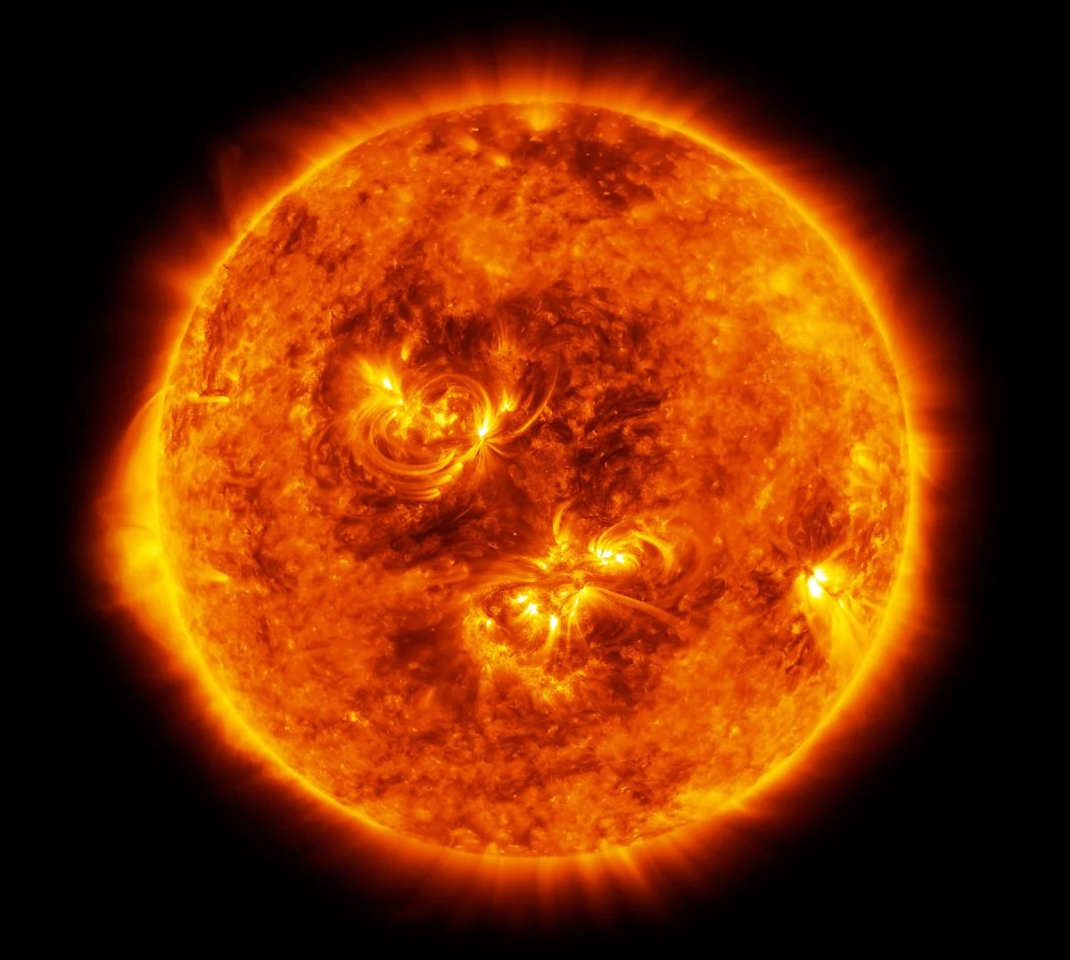 태양의 질량은 지구의 약 33만 배이고 태양계 행성 중 가장 무겁고 큰 목성의 1,048배로, 태양계 전체 질량의 99.9퍼센트에 해당한다. 태양 이외의 모든 천체의 질량을 합해봐야 태양계 전체의 0.1퍼센트 정도밖에 되지 않아, 태양은 가히 태양계의 주인이라고 할 수 있다. 태양의 나이는 현재 46억 살 정도로 추정되며, 앞으로 약 78억 년 정도를 더 살 수 있다. 지구까지의 거리는 약 1억 5천만 킬로미터로, 태양에서 출발한 빛은 약 8분 20초 후에 지구에 도달한다. 즉 지금 우리 눈에 보이는 태양은 8분 20초 전의 모습이다.