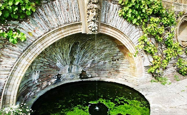 에티엔스가 만든 분수에 지킬이 담쟁이를 덮어 딱딱한 건축물에 생기를 불어넣었다.