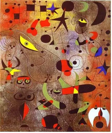 미로, <새벽을 깨우는 별자리들>, 1941년, 종이에 과슈와 테르펜틴, 46 x 38cm, 개인 소장