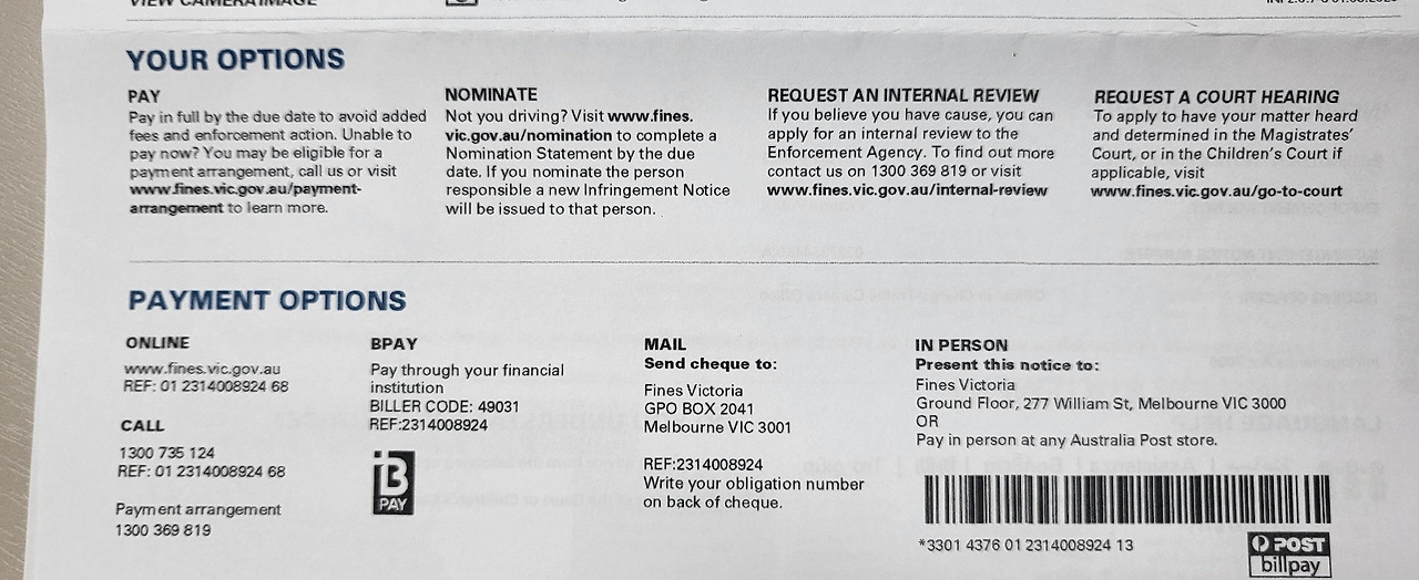 시간을 아끼기 위해 fines.vic.gov.au에 접속해서 내라고 친절한 안내장도 같이 넣어주셨다. 벌금을 안 내게 되면 추가 벌금과 페널티가 적용되니 시간 들이지 말고 FINES VICTORIA 웹사이트에 접속해서 벌금을 내라고 하신다. 남편도 이렇게 호주 웹사이트에 접속해 내 카드로 벌금을 완납했다.