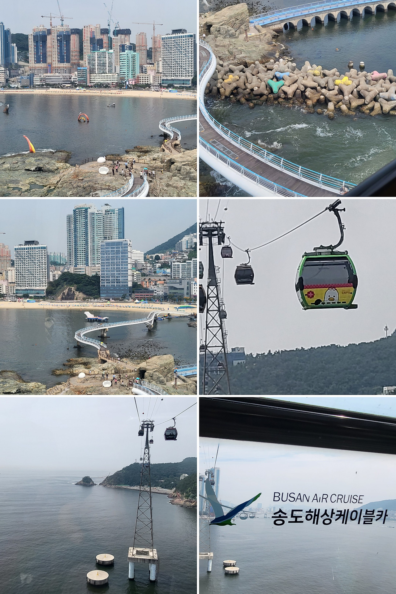 아침을 먹고 케이블카를 타기 위해 송도해수욕장으로 향했다. 호텔에서 준 2장의 탑승권 덕분에 2장만 구입하면 되었다. 송도 해상케이블카는 바닥이 훤히 보이는 투명창으로 된 것과 아닌 것 두 가지 종류 중에서 선택할 수 있었다. 호텔 측에서 주는 이용권은 바닥이 보이지 않는 것이라 같은 탑승권을 구입했다. 탑승권에 34000원이라 되어 있는 걸 보니 인당 17000원에 이용할 수 있다. 바닥을 통해 바다를 볼 수 있는 입장권은 아마 2만 원이 넘어갈 것 같다.