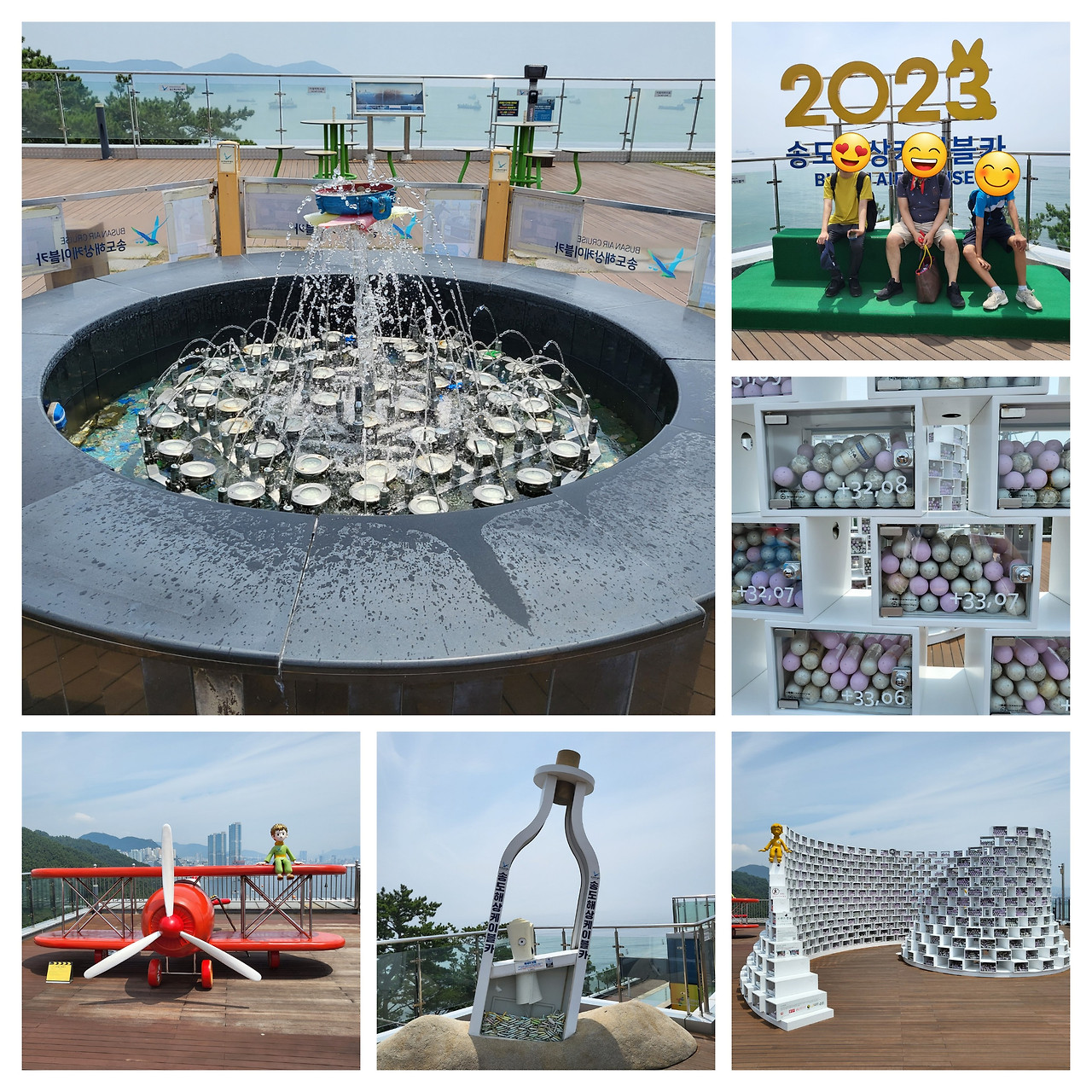 케이블카에서 바라본 부산 바다 풍경. 저 멀리 신축 아파트들. 밤이면 아파트 불빛의 야경이 멋있어 보이긴 하겠지만 바닷가 주변에 자연 풍광이 더 많았으면 하는 바람도 든다. 케이블카를 타고 내리면 3층짜리 건물이 있다. 1층은 매점, 2층엔 카페와 식당이, 3층 전망대엔 사진 찍기 좋은 조형물과 타임캡슐이 전시되어 있다. 아들은 인스타도 하지 않으면서 가는 곳마다 사진을 열심히 찍어댔다. 내려가자 하면 사진으로 다 남기려고 조금만 기다리라고 했다. 더워서 계속 투덜거리지만 새로운 곳을 구경하고 눈에 넣는 것이 싫지는 않은 모양이었다. 아들의 투덜거림과 화를 직면하기 힘들어서 어느 순간부터 가족 여행을 꺼려했었다. 뜻하지 않은 상황에서 발생하는 문제를 부모로서 잘 해결하고, 상황마다 자식들의 마음을 헤아리고 적절한 충고를 하는 것은 아이들을 성장시키는 길이 된다. 예민한 아이를 키우기 때문에 닥칠 상황이 두려워 아무것도 하지 않고 대화도 피하는 어리석은 행동은 다시는 하지 않기로.