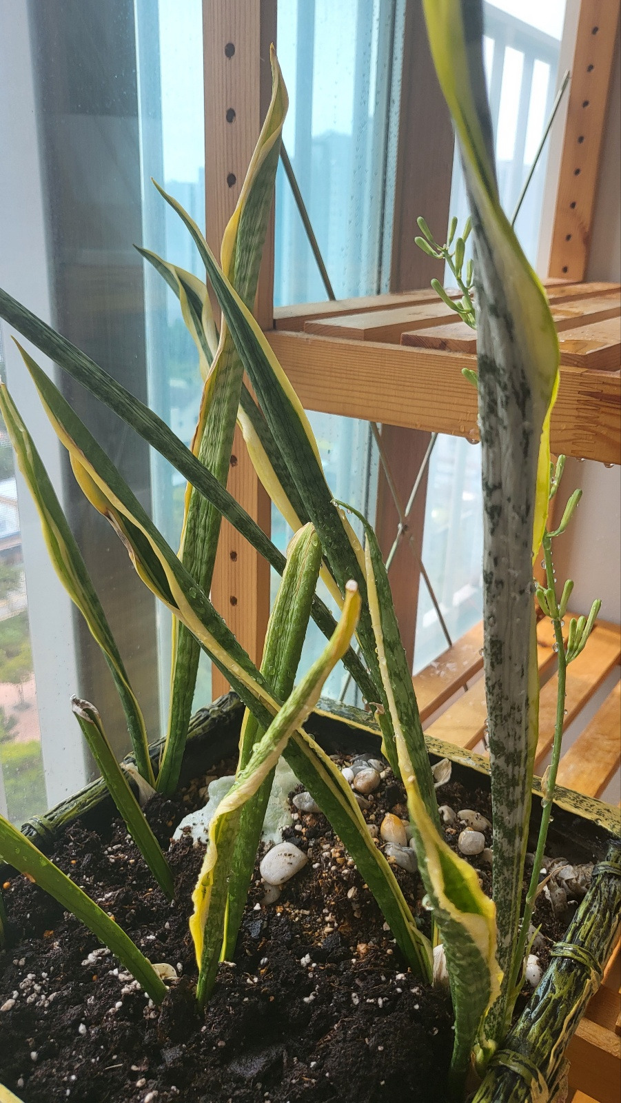 꽃화분은 다 정리했고, 산세베리아는 물을 안 줘도 잘 자라니 신경을 쓰지 않았다.