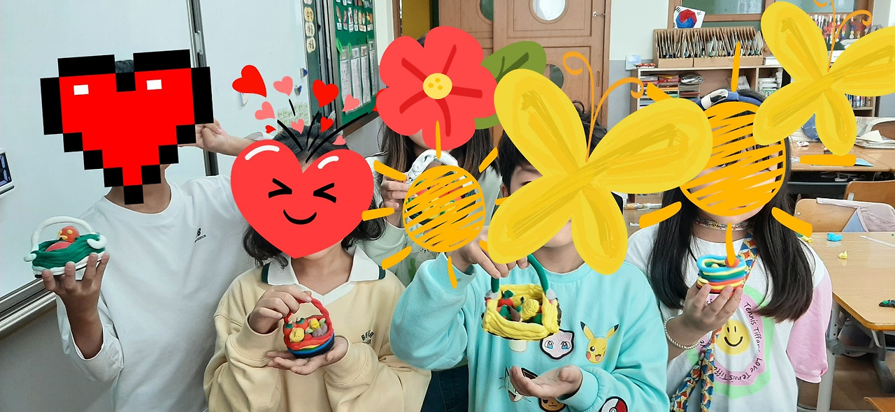 4,5교시 클레이로 가을 열매 바구니 만들기를 했다. 어제 가을 열매에 대해서 배우고 겉과 속 그리기까지 했건만, 정말 열심히 가르쳤건만, 대체 어제의 아이들은 어디로 가고 교실엔 새로운 아이들이 앉아 있는 것인가?