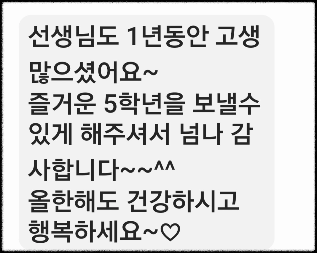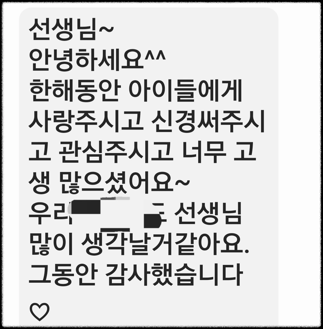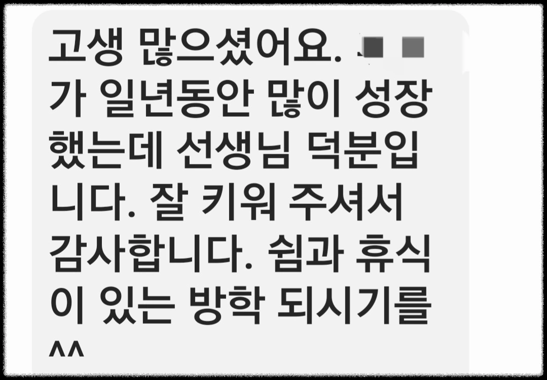 한 해 농사를 잘 지은 해는 감사 문자가 띵똥 띵똥 계속 울린다. 키운다고 고생한 학생의 보호자가 진심을 담은 문자를 보내면 그렇게 고마울 수가 없다.
