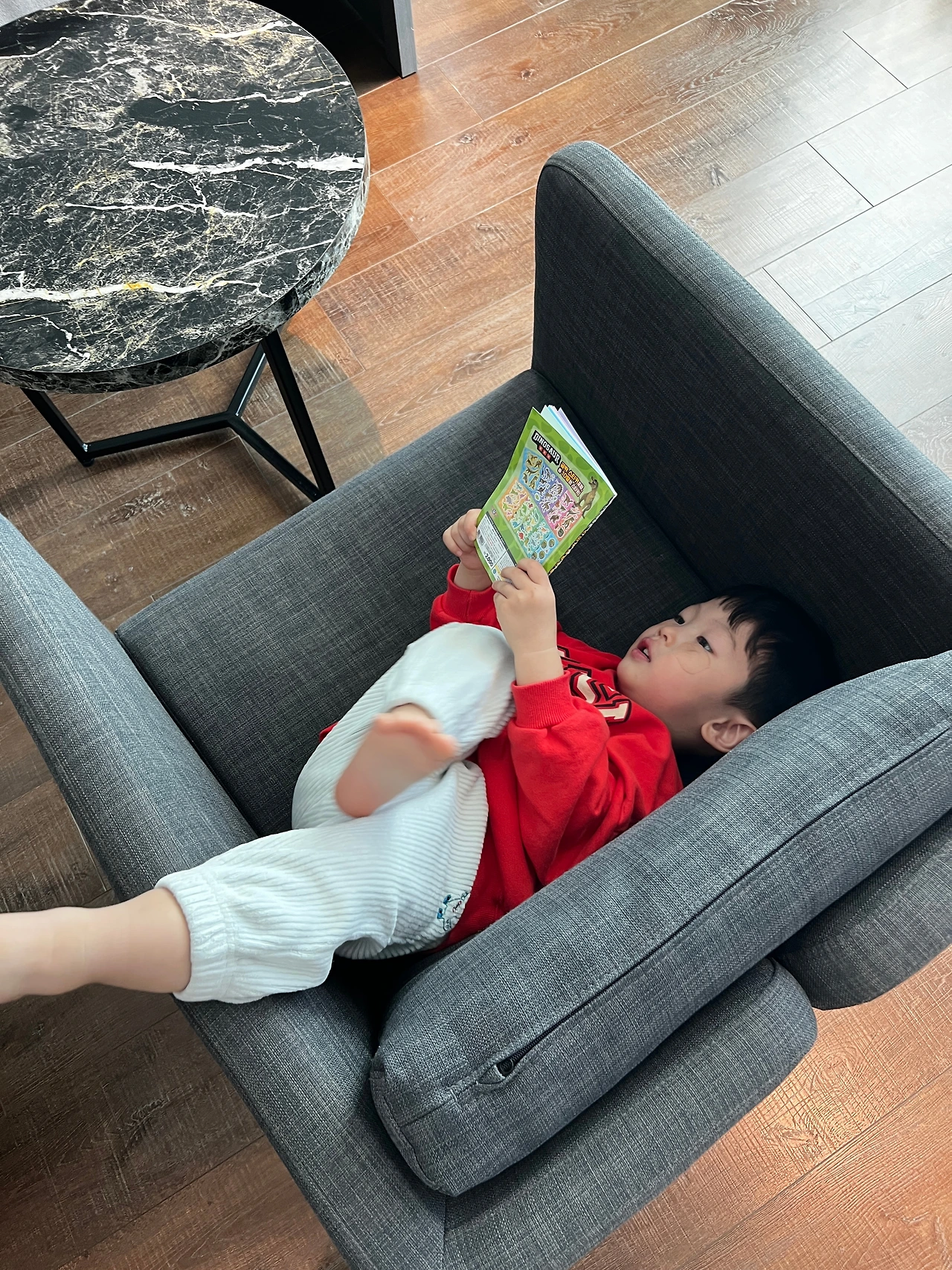 신생아 때는 "이 시간이 언제 지나갈까?" 생각했었는데 지금은 시간이 무섭게 흘러간다. 그리고 2년 반 정도밖에 안된 아들이 이렇게나 커 있는 걸 보면서 때로는 시간이 천천히 갔으면 좋겠다는 생각마저 든다. 2년 조금 넘은 아이와 이렇게 소통이 되고, 나의 마음을 잘 읽을 수 있다는 게 때론 놀랍기까지 하다. 사실 그것보다도 나랑 너무 닮은 생명체가 나와 똑같이 행동하려고 한다는 게 재밌고 좋다가도 몰랐던 나의 행동을 거울 치료하는 것 같은 느낌이 들기까지 한다.