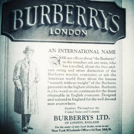 버버리 코트를 입고 전쟁에 참전했던 군대 장교들이 전쟁이 끝난 후 일상에서도 버버리를 계속 입으면서 대중에게 알려지면서 유행을 이끌었던 트렌치코트. 방수와 방한이 뛰어나 특허까지 출연하여 세계적으로 인기를 얻게 된 개버딘 소재. 소재와 기능의 우수성은 실용적이면서도 멋스러운 클래식함을 탄생시켰다. 영화 '애수(1940)', '카사블랑카(1942)', '티파니에서 아침을(1961)' 등등 영화에서 배우들이 입고 나오면서 자연스레 대중들에게 고급스러운 브랜드로 자리 잡을 수 있었다.