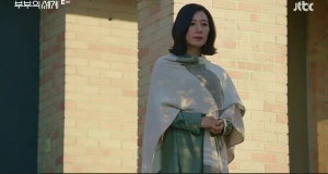 <헬렌카민스키 판초를 두른 김희애, 출처 : JTBC, 부부의 세계>