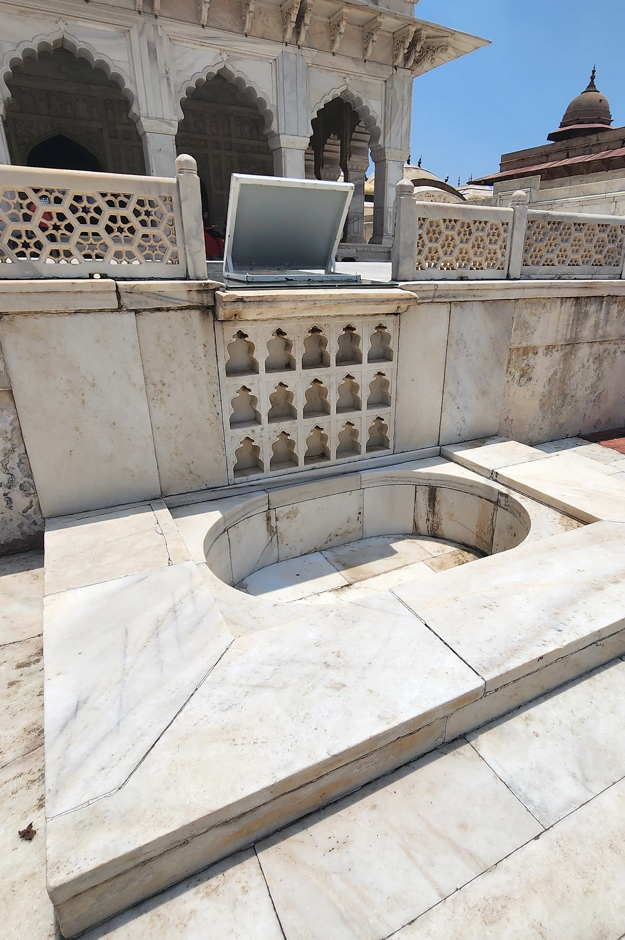 대리석으로 만든 이 '자로카'는 세 개의 아치형 입구와 보석으로 장식되어 있으며 'Takht-i-Murassa'(왕좌의 방)로 알려져 있다. 이 방은 왕실과 연결되어 있어 왕실의 여인들은 왕실의 좌우에 천공된 스크린이 있는 대리석 창을 통해 Diwan-i-Am의 의식을 볼 수 있었지만 홀에 있는 사람들은 볼 수 없었다.