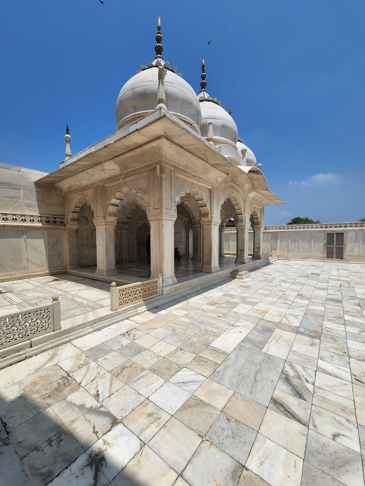 슬픈 이야기지만, 샤자한은 여기 유폐되어 사랑하는 아내가 묻힌강 건너편의 타지마할에 가보지 못하고, 죽은 후에야 타지마할의 아내 곁에 안장되었다고 한다.