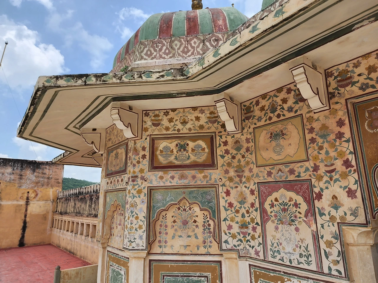 정원 난간에서는 '핑크시티' 자이푸르를 한눈에 볼 수 있다. 참고로, 성 바깥쪽의 마오타 호수 옆에도 무굴식 정원인 케사르 카야리를 조성하고, 여성들의 이동 통로를 만들었다고 한다.