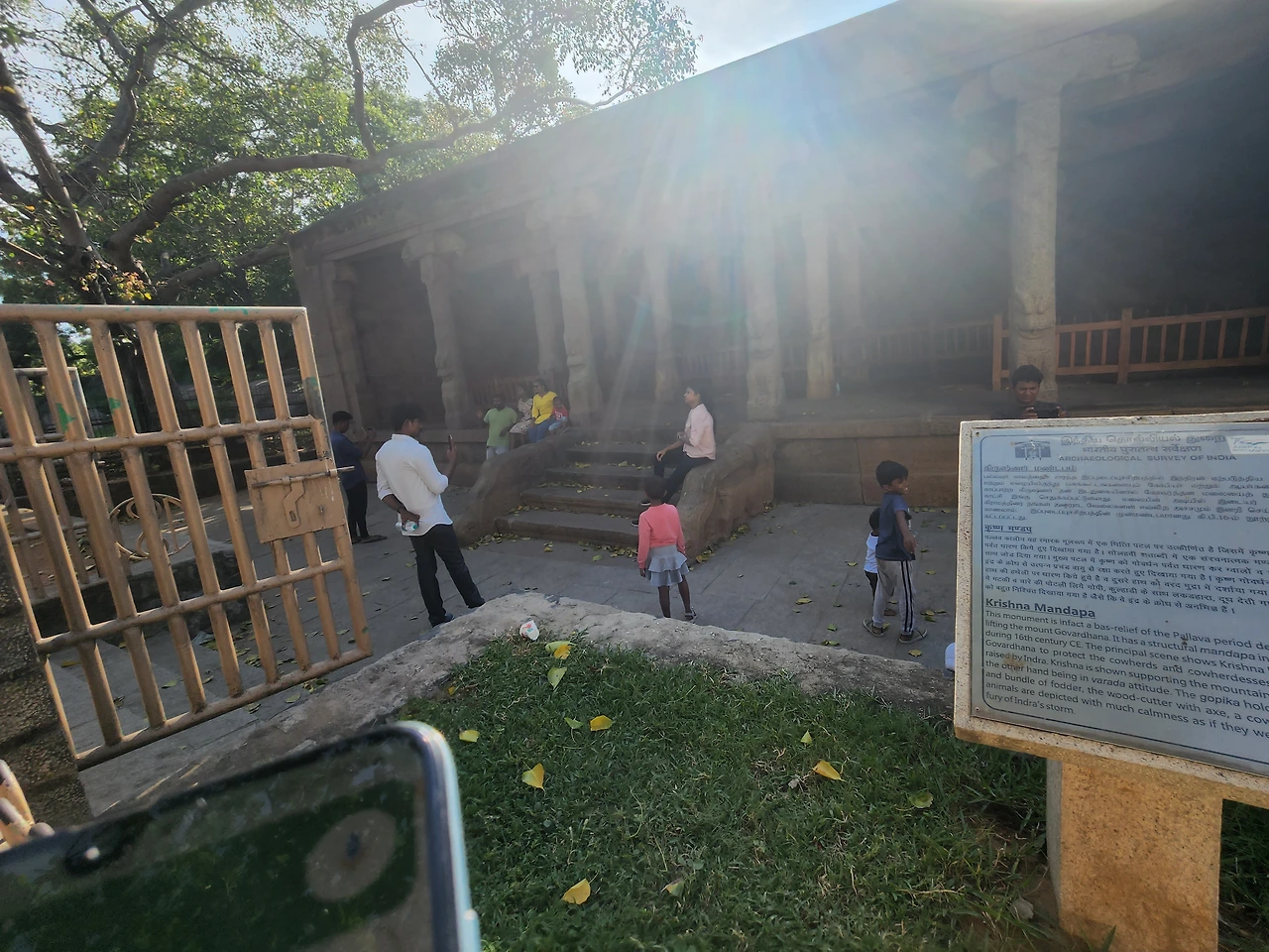 크리슈나는 비슈누 신의 8번째 화신으로 '사랑의 신'으로 유명한데, 그의 버터볼이 여기에 떨어져 바위가 되었다고 한다.설악산 흔들바위를 열심히 밀어 보지만 움직이지 않는 것처럼, 경사면에 있는 이 버터볼 바위를 열심히 밀어도 굴러 떨어지지 않는다고 한다. 인도인들이 바위가 만들어주는 그늘을 쉼터 삼아 앉아 있는 모습이 여유롭다.