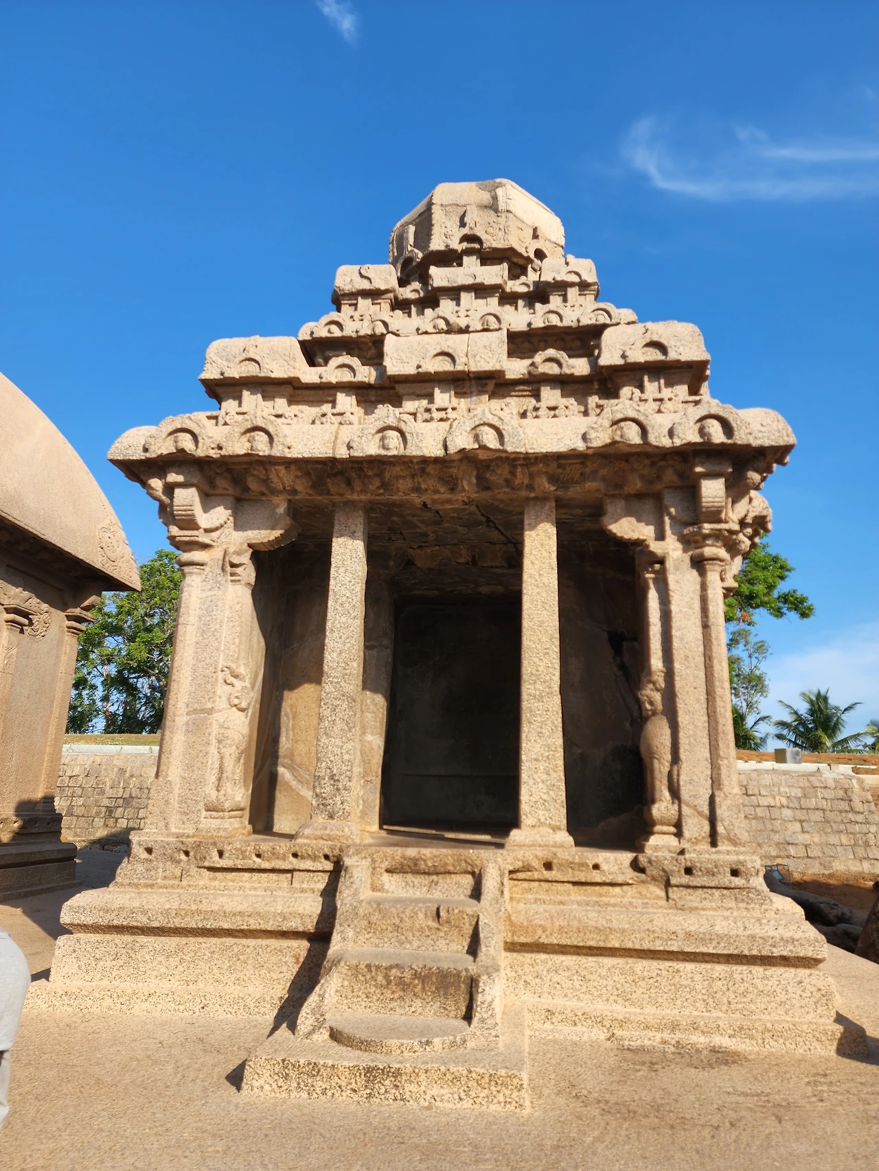 Dharmaraja Ratha의 세 단계의 피라미드식 정사각형 구조로 만들어졌다. 힌두교 신들인 Harihara, Brahma, Ardhanarishvara 및 나라시마바르만1세의 조각으로 강조되었다.