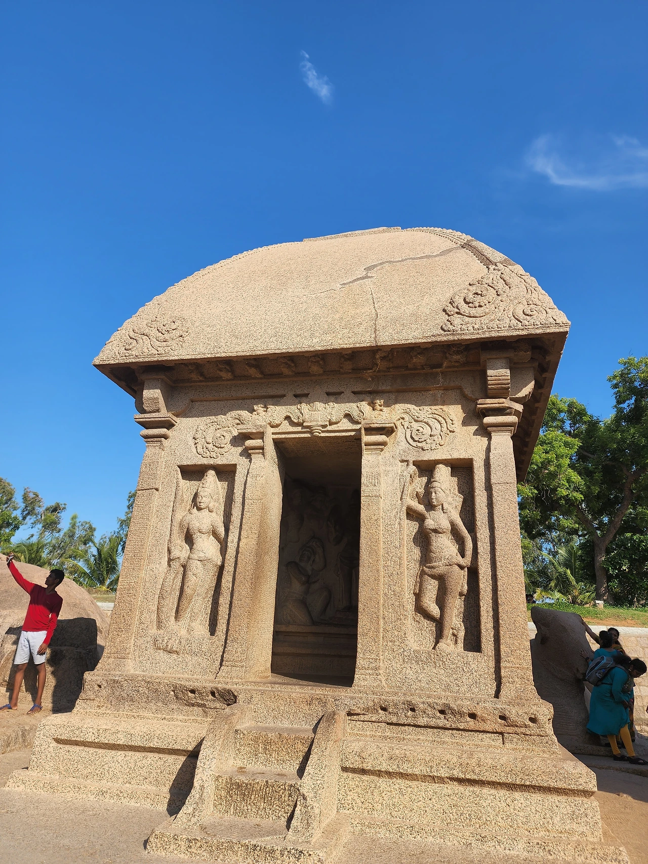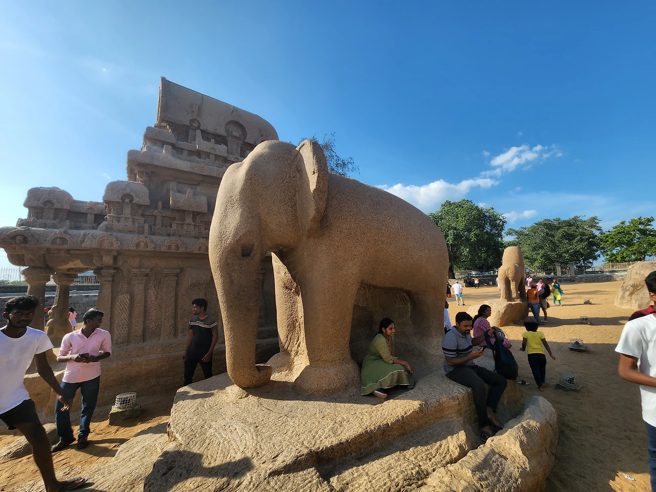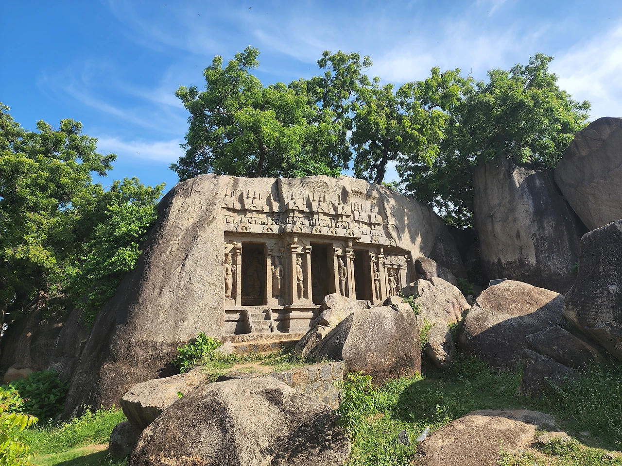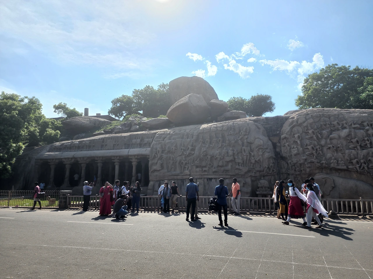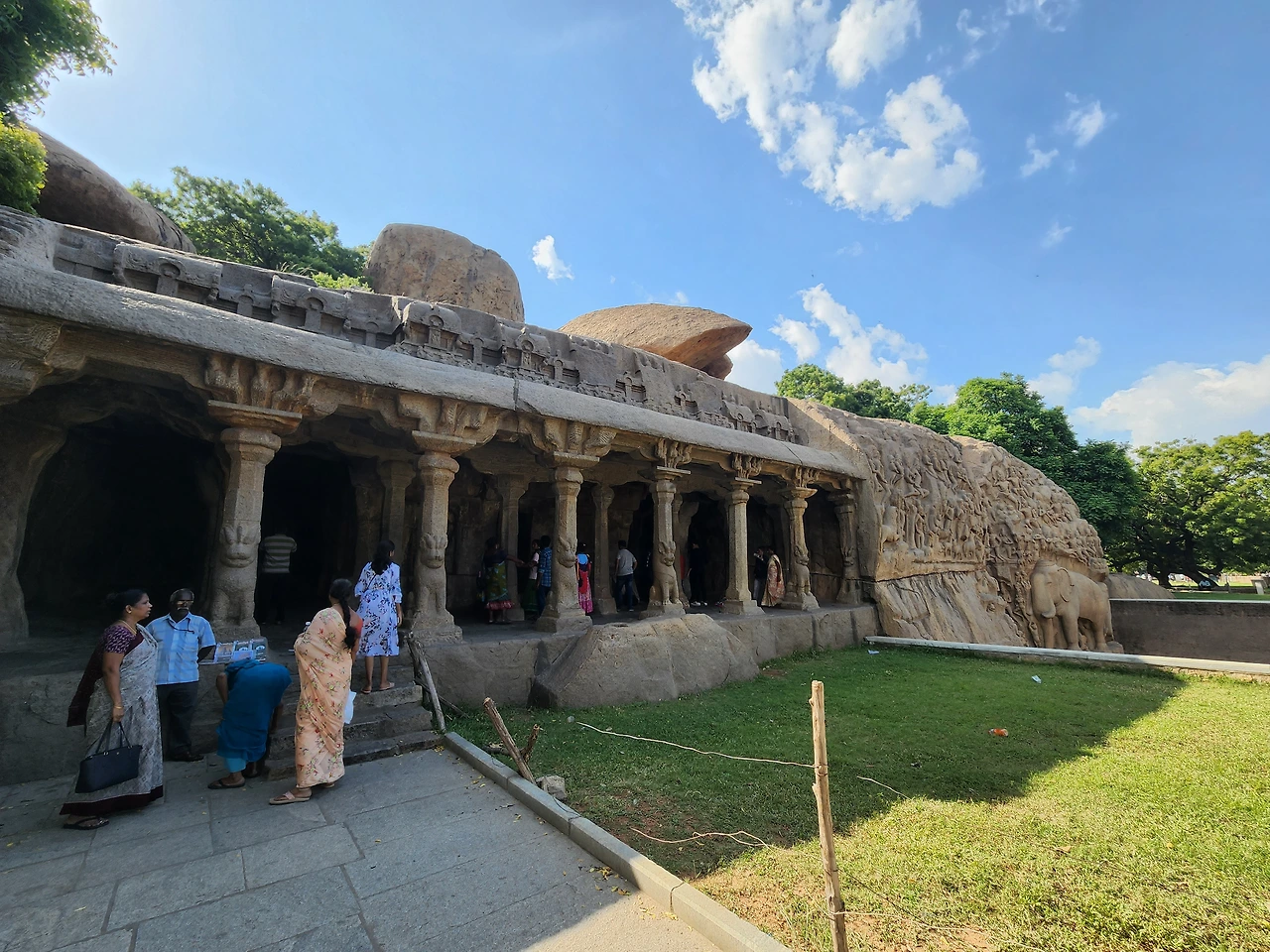 해변을 따라 바위들이 많은 지역인데, 하나의 큰 바위를 깎아내 만든 바위 사원들과 조각들로 힌두교의 서사시 마하바라타의 이야기를 담고 있다.