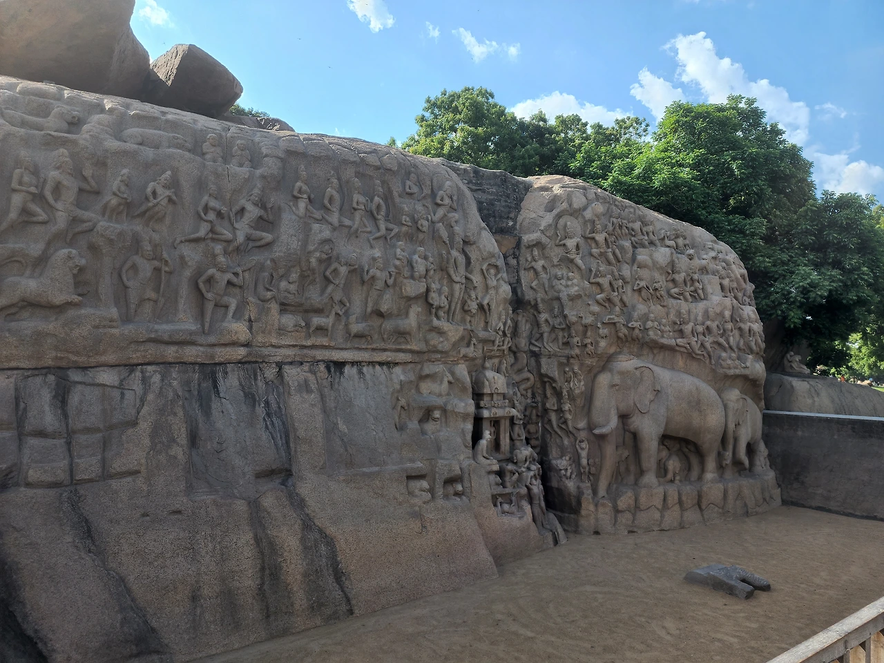 커다랗고 평면으로 생긴 노천 바위에 조각을 남긴 유물로 다른 이름으로는 ‘갠지스 강의 하강(Descent of the Ganges)’ 로 불린다.