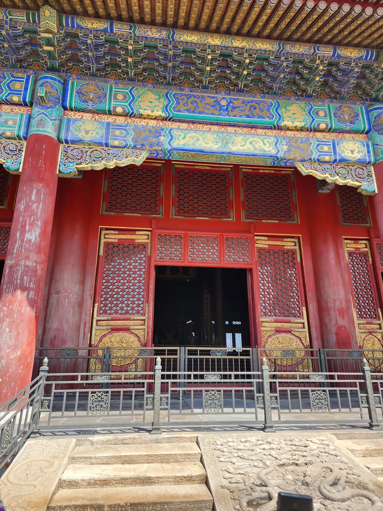 총 72개의 남목 기둥으로 지탱되고 있고, 그들 중 특히 황제의 옥좌와 가까운 6개의 기둥들은 모두 금이 씌워져 있다.명나라 시기에는 황제가 이곳에서 대신들과 국사를 의논하였으며,청나라 시대에는 황제의 즉위식, 결혼식, 책봉식과 같은 국가의 중요한 행사들만 여기서 열렸다. 영화 '마지막 황제'의 청나라 황제 '부의'가 실제로 황제 즉위식을 한 장소이다.