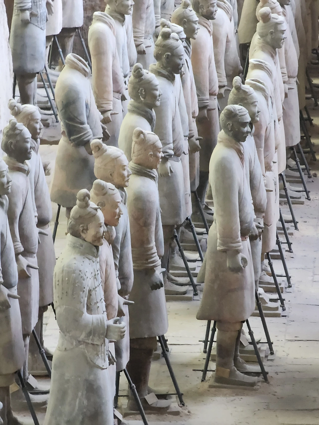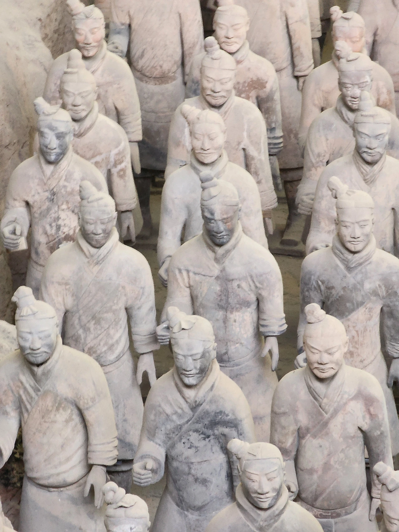 진의 수도였던 함안(지금의 서안)은 진시황이 중국을 통일한 후 통합(진시황은 전 중국에 통일된 문자, 화폐, 도량형을 도입하고자 했다)과 사방 어디서든 침략할 수 있는 적들로부터 보호(군대는 무덤에서 바깥을 향하고 있는 죽은 황제의 얼굴을 지키고 있다)하기를 바랐던 중국의 축소판이다.