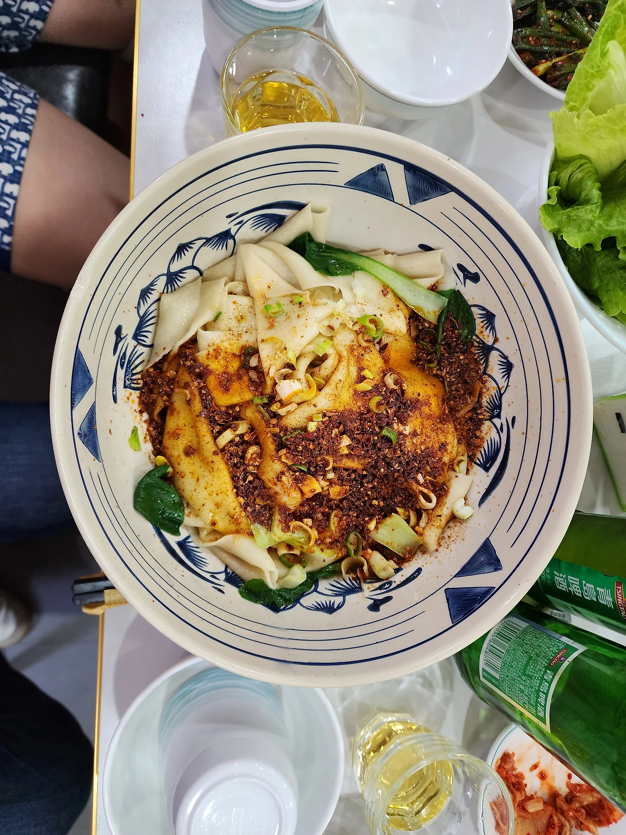 중국 산시성(섬서성)의 국수 요리인 '뱡뱡면'은 면발의 폭이 벨트처럼 넓고 매운 고추를 얹어먹는 게 특징이다. 그런데 뱡뱡면의 ‘뱡’ 자는 무려 57획(그림)이나 돼 중국에서 가장 복잡한 한자로도 유명하다. 표준어 사전에는 없는 글인 데다 섬서성 일대에서만 ‘면의 폭이 넓은 국수’란 의미로 쓰여왔다. 뱡뱡면은 두께와 길이로 인해 벨트와 유사하다고 묘사되며, '섬서성의 10가지 괴이한 것 (陝西十大怪)' 중 하나로 꼽힌다.