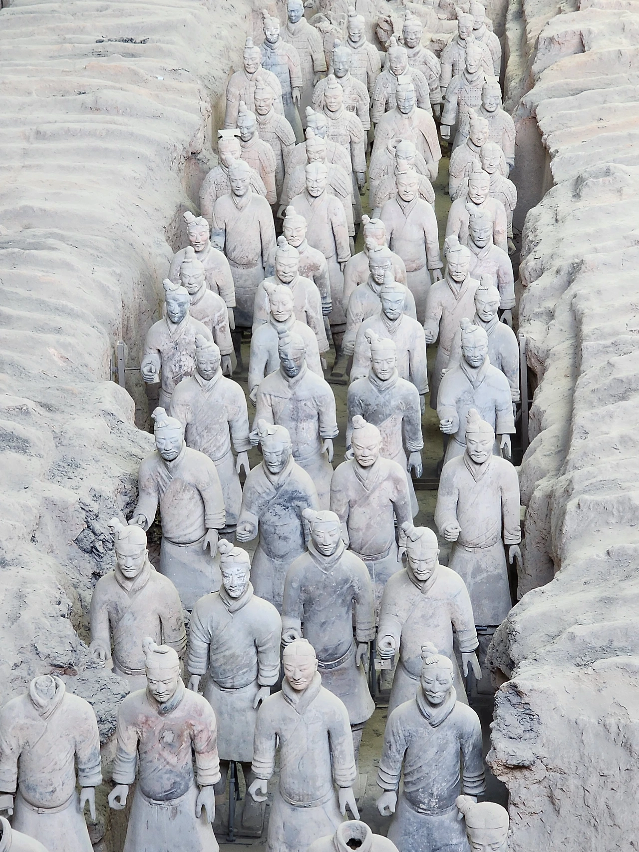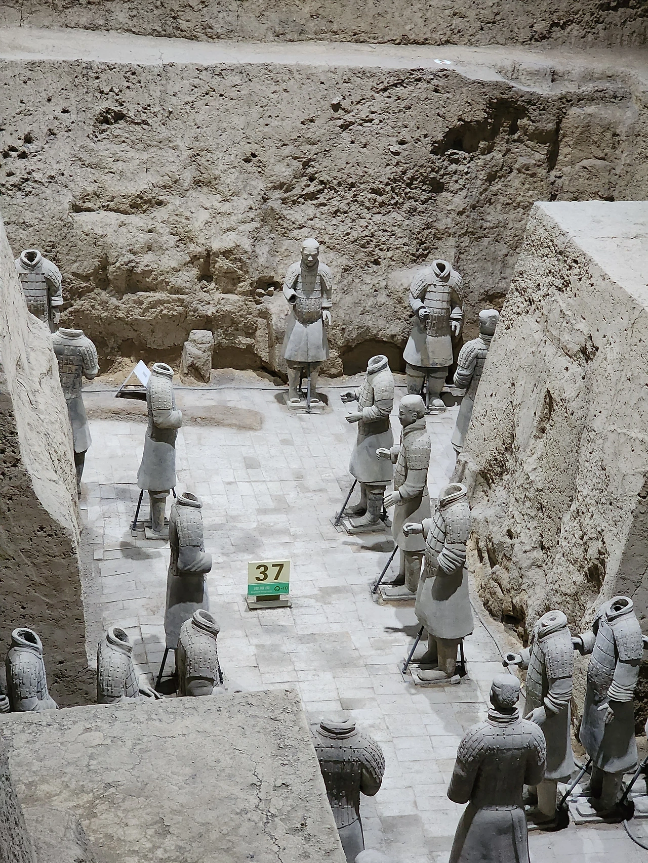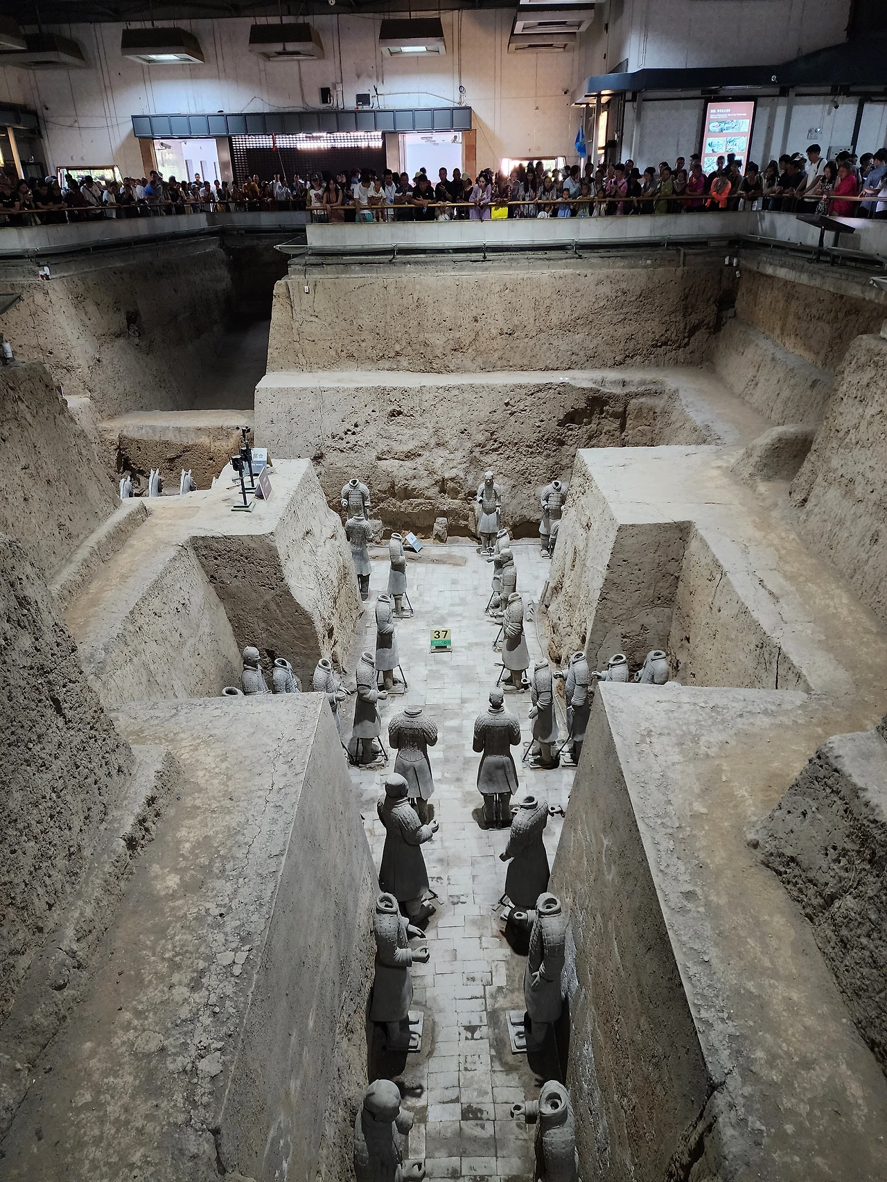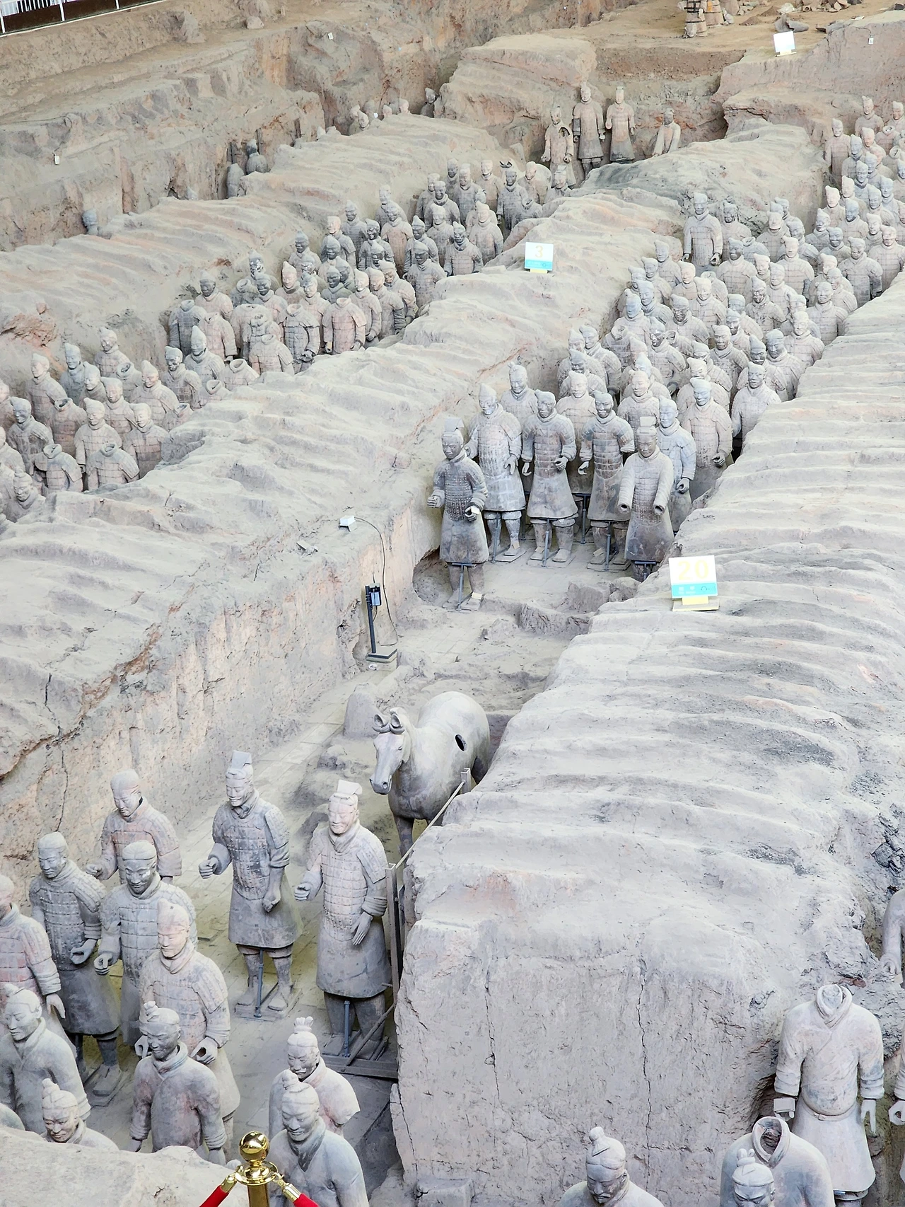측면을 보호하는 궁수들과 함께 전투 대열로 서 있는 보병대와 기병대의 병사 1,087명이 나왔다. 길이 230m에 이르는 이 하나의 갱에만 하더라도 6천여 개의 병마용이 있을 것으로 추정된다. 현재 이 주변은 박물관으로 보호되고 있다.