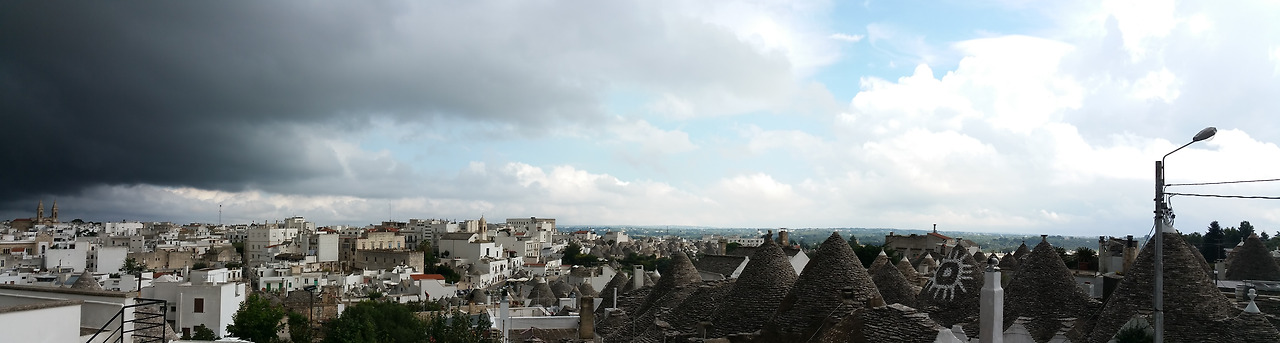 이 ‘트룰로(Trullo)’는 지붕이 원뿔 구조의 원통형으로 생긴 집인데, 14세기경부터 시작하여 이 마을에 하나둘씩 이 건물들이 자리 잡기 시작하여, 16~17세기에 확산되어 오늘날의 ‘트룰리(Trulli; 트룰로의 복수형)’마을을 이루게 되었다고 한다.