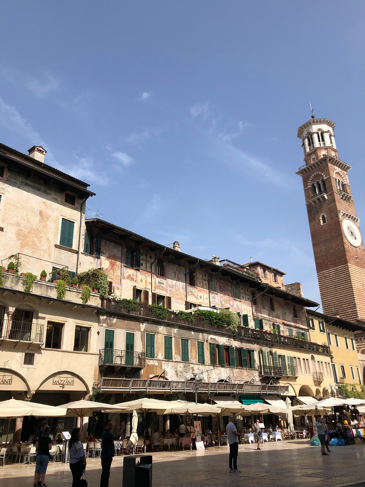 Arena를 바라보고 왼쪽 옆에 난 번화한 거리(Via Giuseppe Mazzini)를 계속 걸어 걷다 보면, 많은 상점들이 운집한 에르베 광장(Piazza Erbe)과 시뇨리 광장(Piazza dei Signori)에 다다르게 된다. 겨울이면, 크리스마스 마켓으로 변신하는 곳이다.