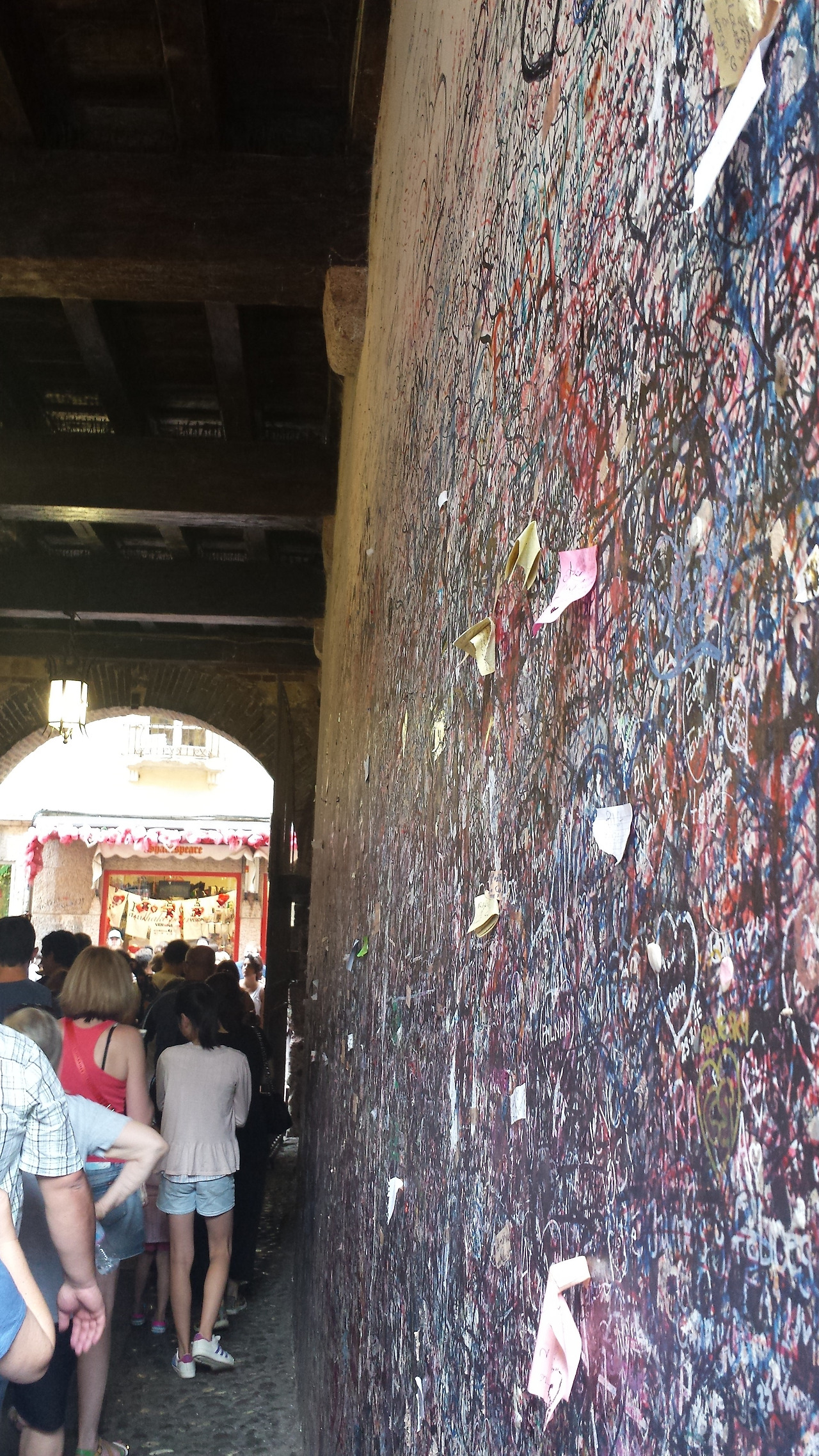 인산인해를 이루는 '줄리엣의 집'(La Casa di Giulietta)와 사랑의 낙서가 적힌 입구의 벽