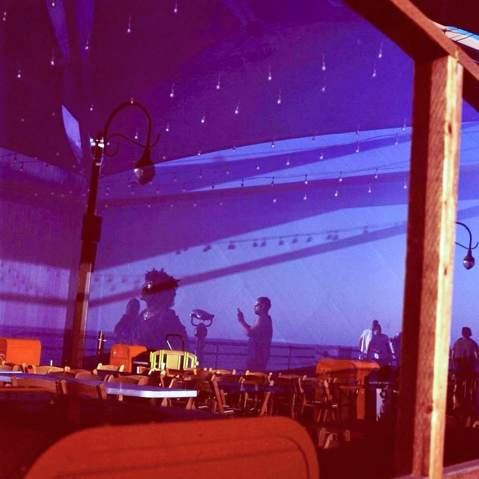 이 사진은 산타모니카 비치를 거닐다 찍었다. 정사각형 포맷의 중형 필름카메라로 유리창에 비친 풍경을 찍은 것이다. 하지만 처음 내가 발견한 것은 노란 의자였다. 텅 빈 공간 속 그 의자 위로 드라마틱한 하늘과 사람들의 반영이 채워지고 있었다. 아직 불도 밝히지 않은 꼬마전구들은 마치 밤하늘의 별인 양 천정에 박혀있다. 다시 또 '환상'을 연출하려는 세트장 같았다.