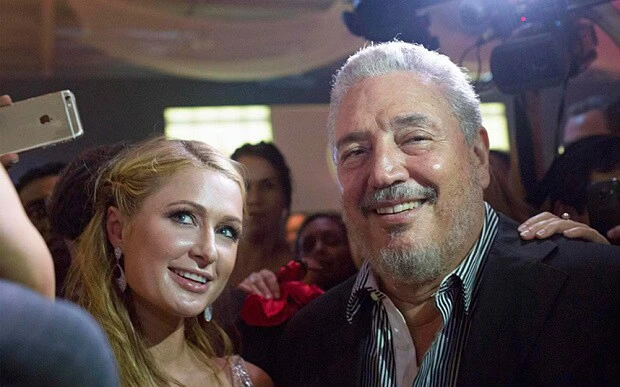 <카스트로 아들과 셀카를 찍는 패리스 힐튼. 출처 Telegraph>