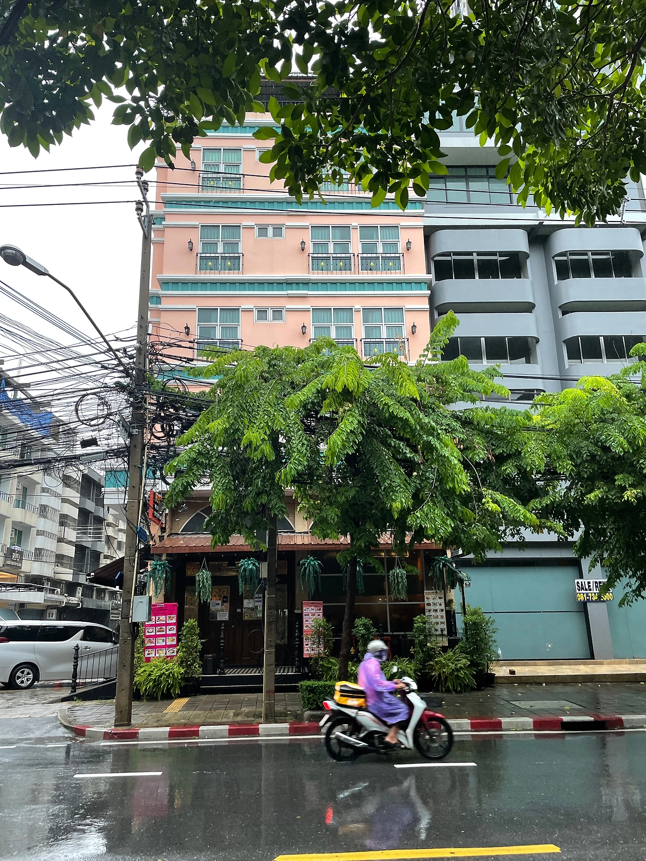 비가 그치고 배가 부르고 나니, 조금씩 다른 것들이 보였다. 비비 온 뒤 바닥의 남아있는 물기의 반짝임은 생기 있어 보였고, 지나가는 오토바이 드라이버의 채도 높은 레드 바이올렛 우비 색과 동유럽 건축에서나 볼 법 한 코럴 핑크 외관의 조화는 의도적으로 연출된 것처럼 느껴져 작품 속을 걷는 느낌이 들었다. 구글 맵을 켜고 숙소 쪽으로 그냥 걸었다.