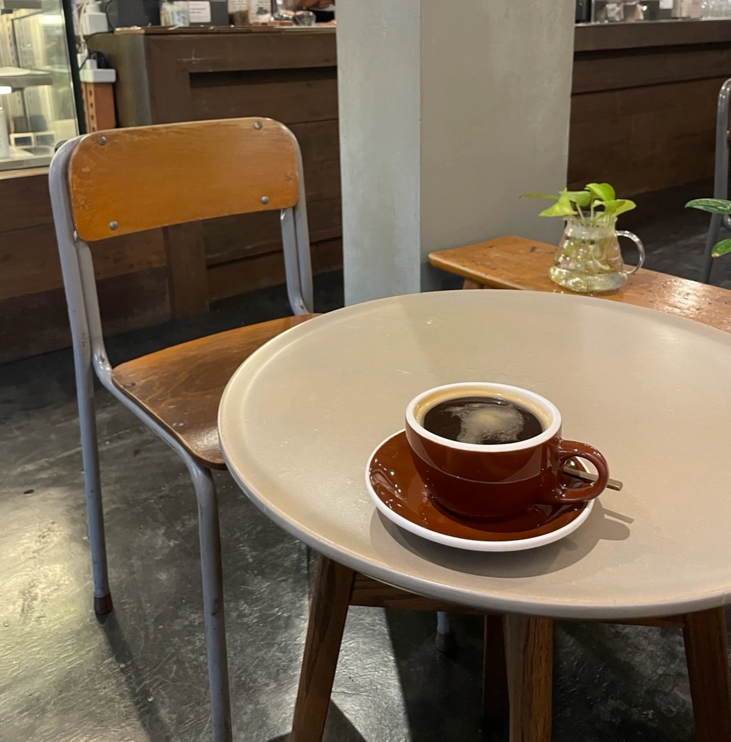 느슨하게 누워있는 고양이와 갤러리처럼 꾸며진 아기자기한 카페가 조용히 마음을 다 스리가 좋은 장소로 여겨졌다. 자리를 잡고 앉은 순간 눈앞에 보인 건 초등학교에서 사용했었던 의자가 생각났다. 타국에서 펼쳐진 스릴러 영화를 한편 찍었던 나는 무서움과 당황스러움에 입국 하루 만에 한국이 그리웠었나 보다 매운 닭볶음탕 맛 갈비찜과 초등학교 때 사용했던 의자를 보며 마음의 안정과 편안함이 느껴졌다. 의자를 보며 초등학교 시절 왁스칠을 매일 했던 나무 바닥으로 카페를 꾸몄었으면 더 좋았겠다는 생각과 이 카페 주인이 그런 경험을 했을 리 없겠다며 혼자 피식 웃었다. 오늘 처음 올라간 입꼬리였다.