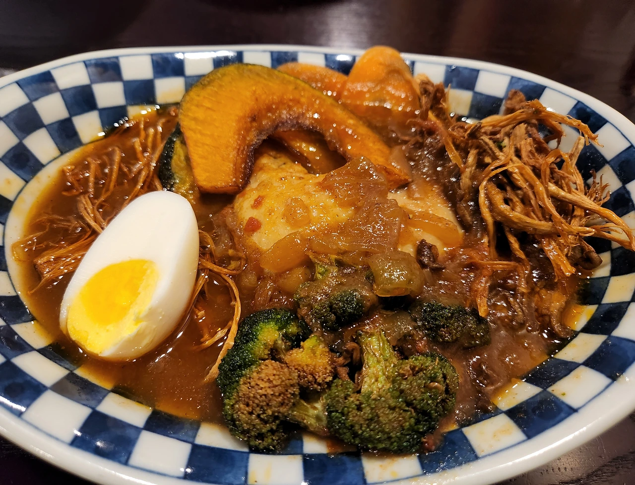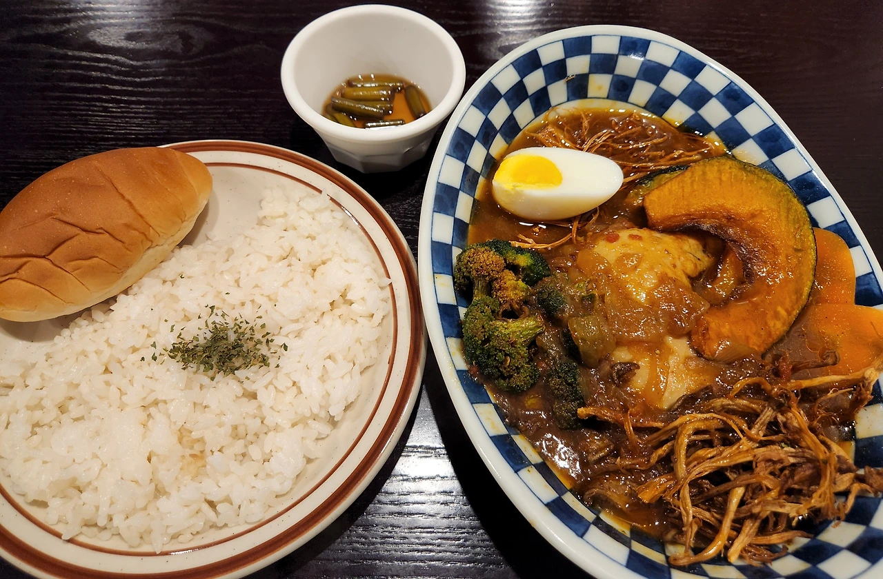 주문한 지 5분도 안되어 나온 수프 카레는 우리가 일반적으로 보던 카레의 모습은 아니었다. 튀긴 야채와 큼지막한 닭다리가 하나 얹어져 있었고 카레라기 보단 아주 묽은 국 같아 보였다.