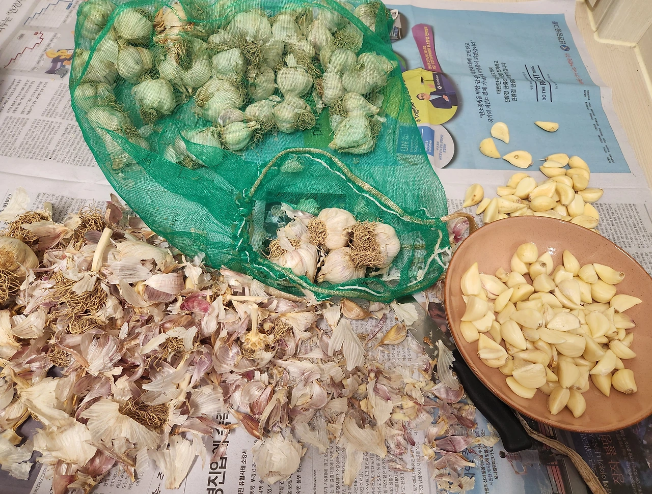 마음 한켠에 걱정이 자리 잡고 있었지만 몸은 쉽게 움직이지 않았다. 마늘 양을 보니 적어도 두세 시간은 족히 걸리는 작업이라 손이 쉽게 가지 않았다. 그러던 어느 날, 이제 더 이상은 지체하면 안 될 것 같다는 생각이 들었다. 시간을 지체하다가 양파가 썩어 먹지도 못하고 버린 경험이 있었기 때문이다.