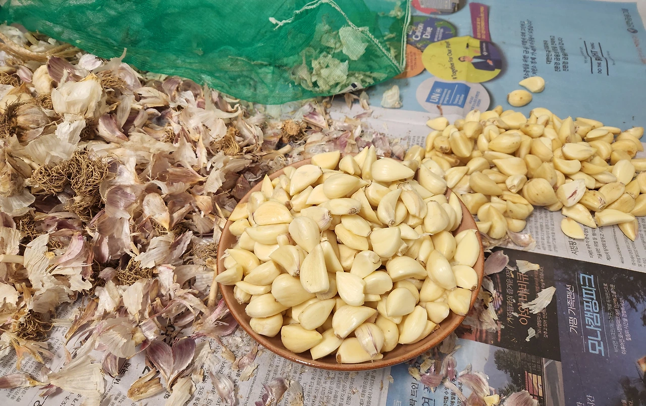 시아버지께서 얼마 전 텃밭에서 마늘을 수확해 한 포대 보내주셨다. 감사한 마음으로 이것저것 음식을 만들어 먹었다. 하지만 마늘 포대는 줄어들 생각이 없었다. 그러던 와중 장마가 와서, 베란다에 있는 마늘이 걱정되기 시작했다. '설마 상하는 건 아닐까? 언제 날 잡아서 한번 껍질 까고 냉장고에 넣어놔야 하는데..'