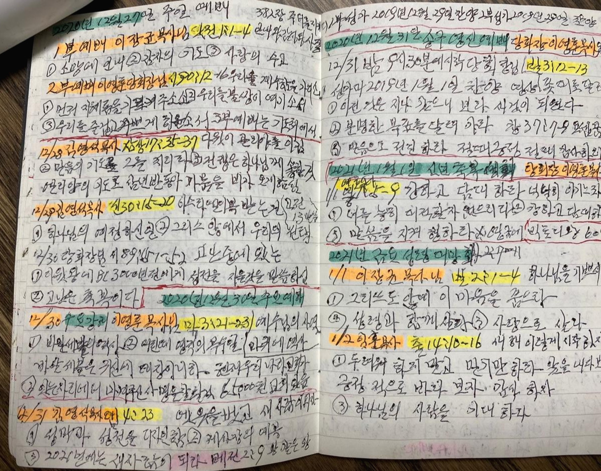 수첩 뒤에 기도제목들이 적혀 있다는 것. (개인적인 사항이라 밝힐 수는 없지만...)
