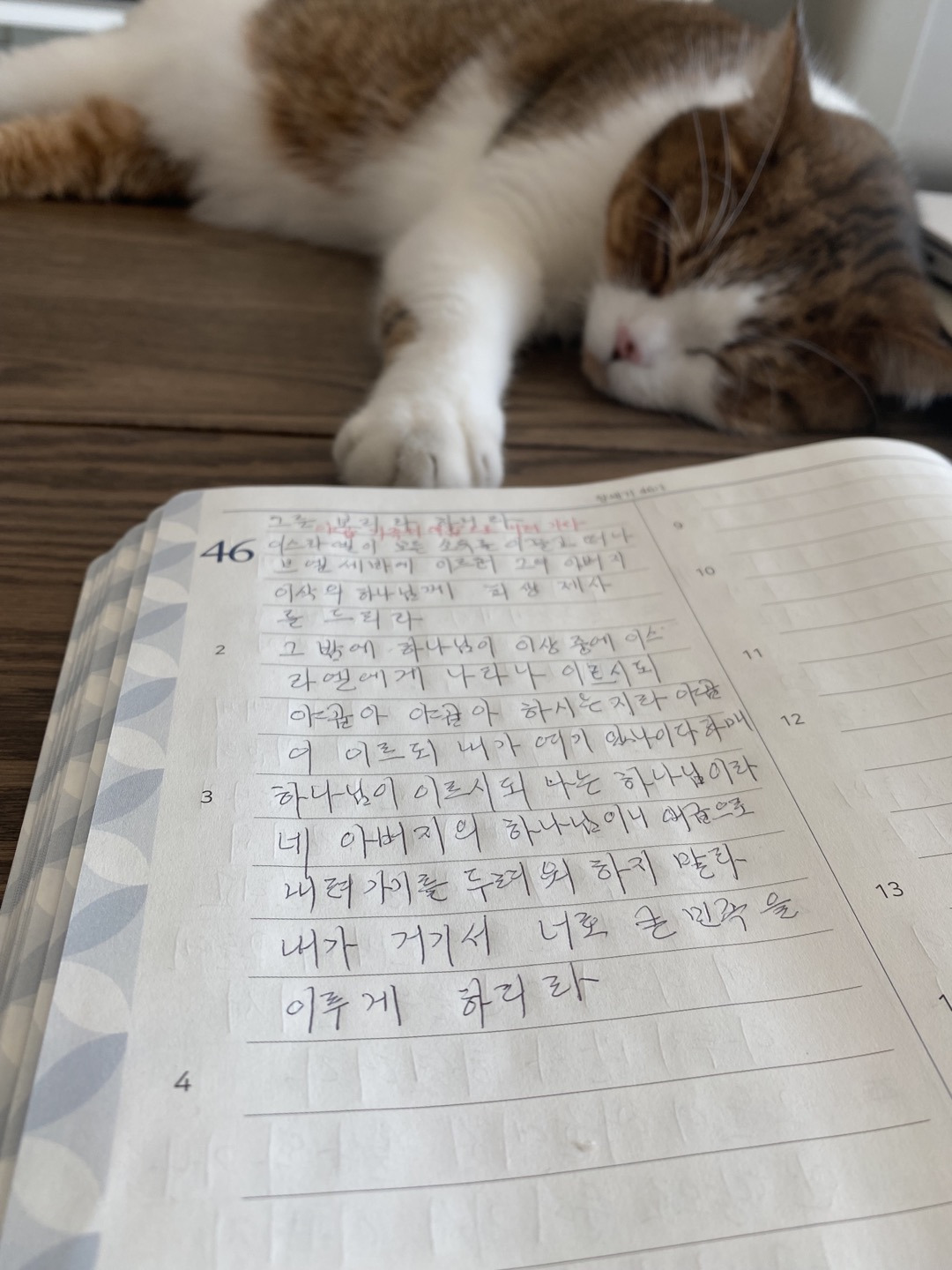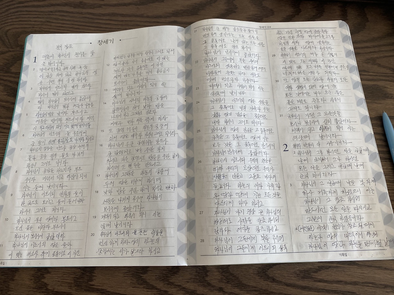 처음에 창세기부터 하루에 세 장씩 쓰기 시작했는데.. 시간이 정말 많이 걸렸다.