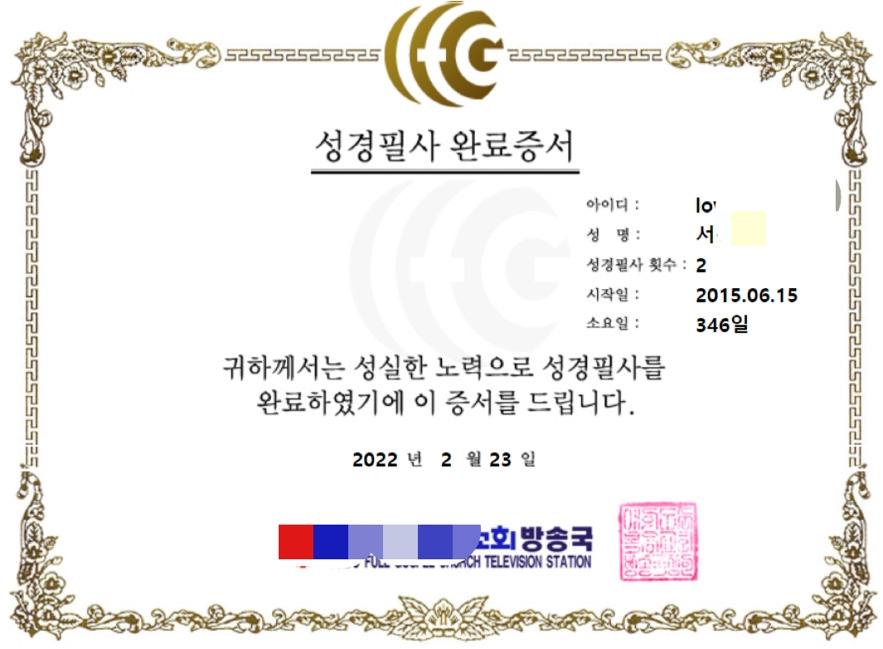 그리고 2019년부터 2020년까지 세 번째 성경필사를 완료했다. (1년 반 정도걸림)