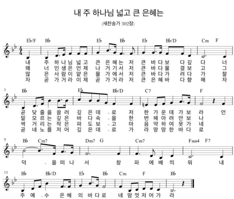 내 주 예수 은혜의 바다로 네 맘껏 저어 가라