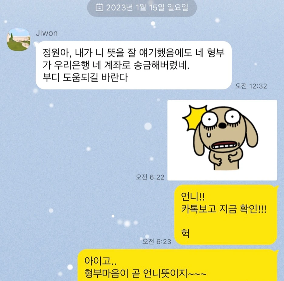 미국에 있는 사촌언니에게 문자가 와 있었다.